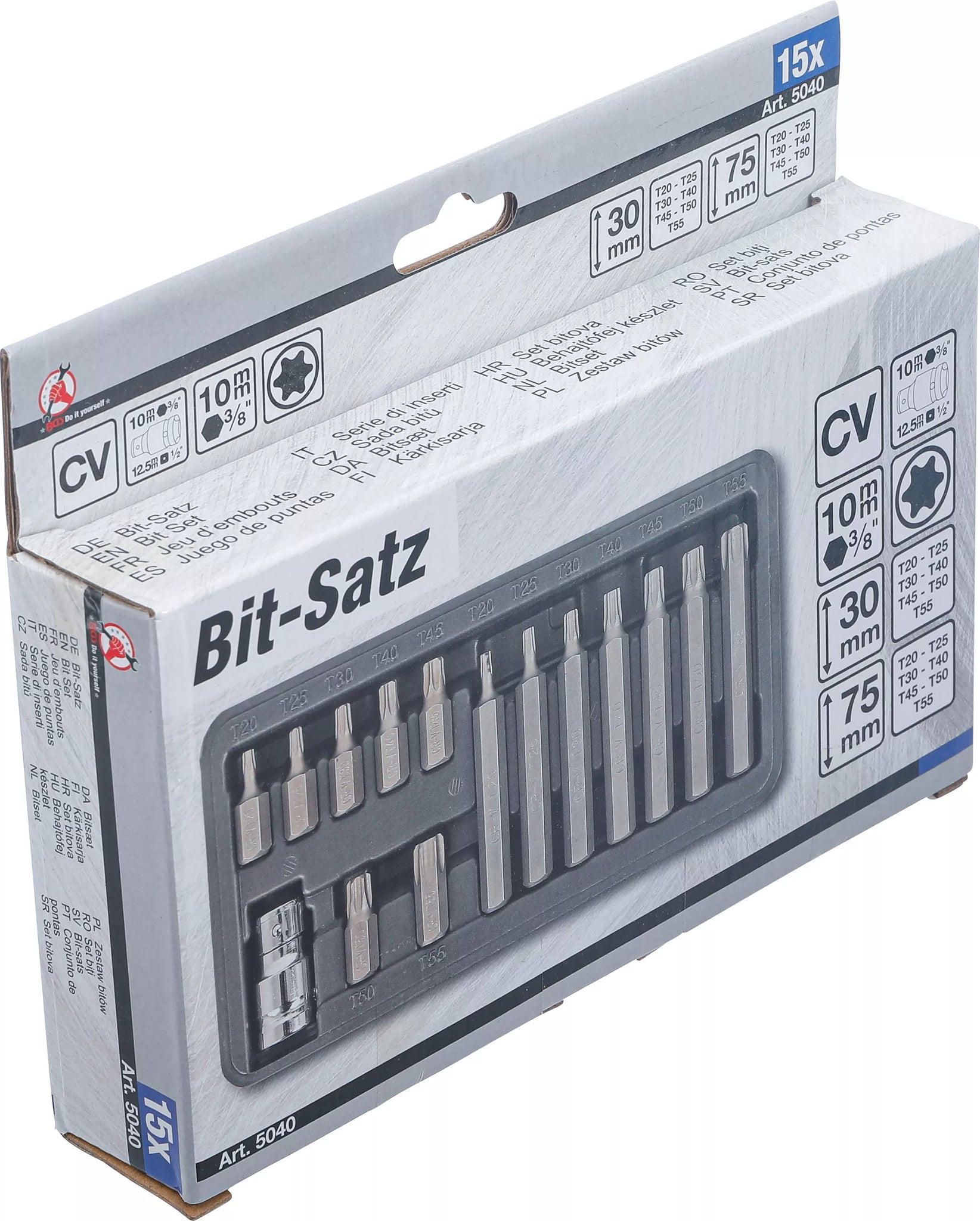 Bit-sats | Yttre sexkant 10 mm (3/8") | T-Profil (för Torx) | 15 delar. BGS Diy 5040