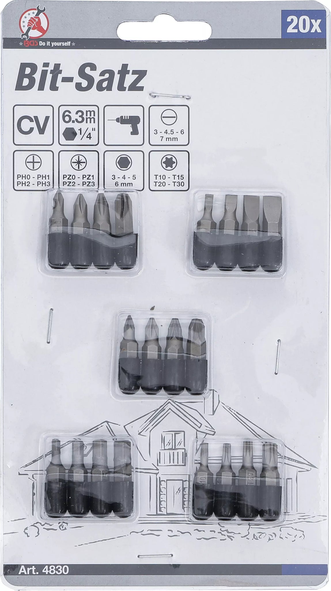 Bit-sats | Yttre sexkant 6,3 mm (1/4") | 20 delar. BGS Diy 4830