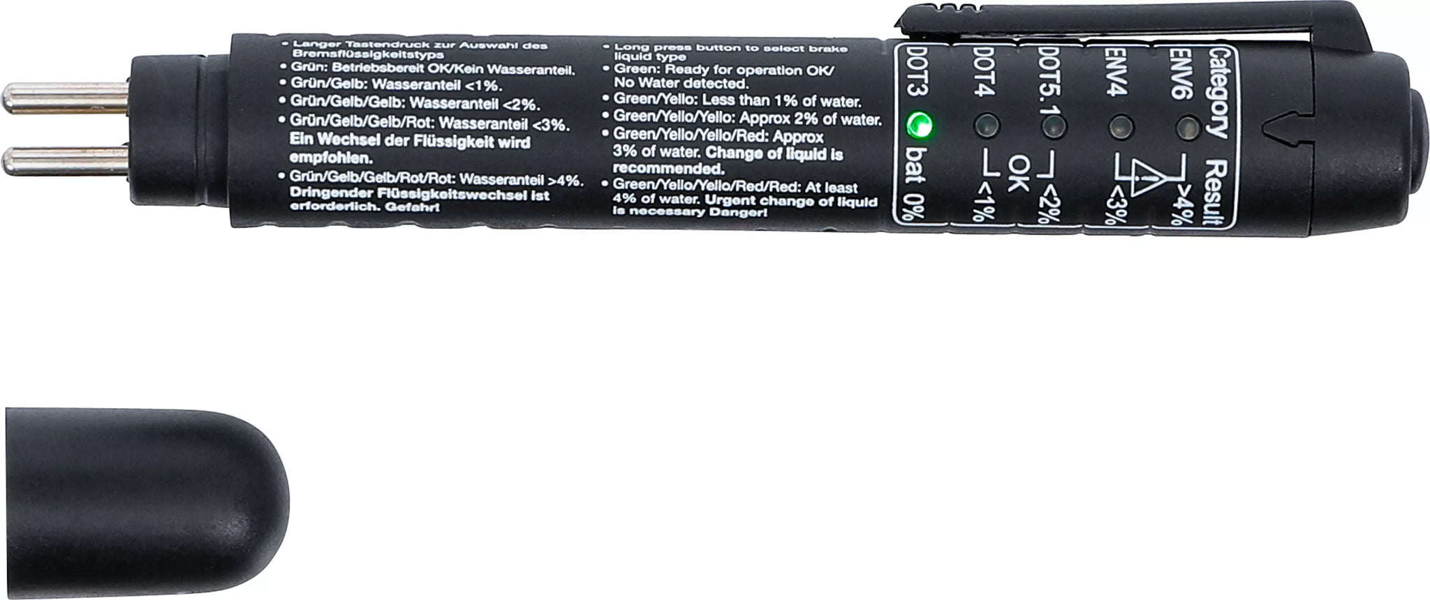 - För snabb och enkel bestämning av vattenhalten (H²O) i bromsvätskan