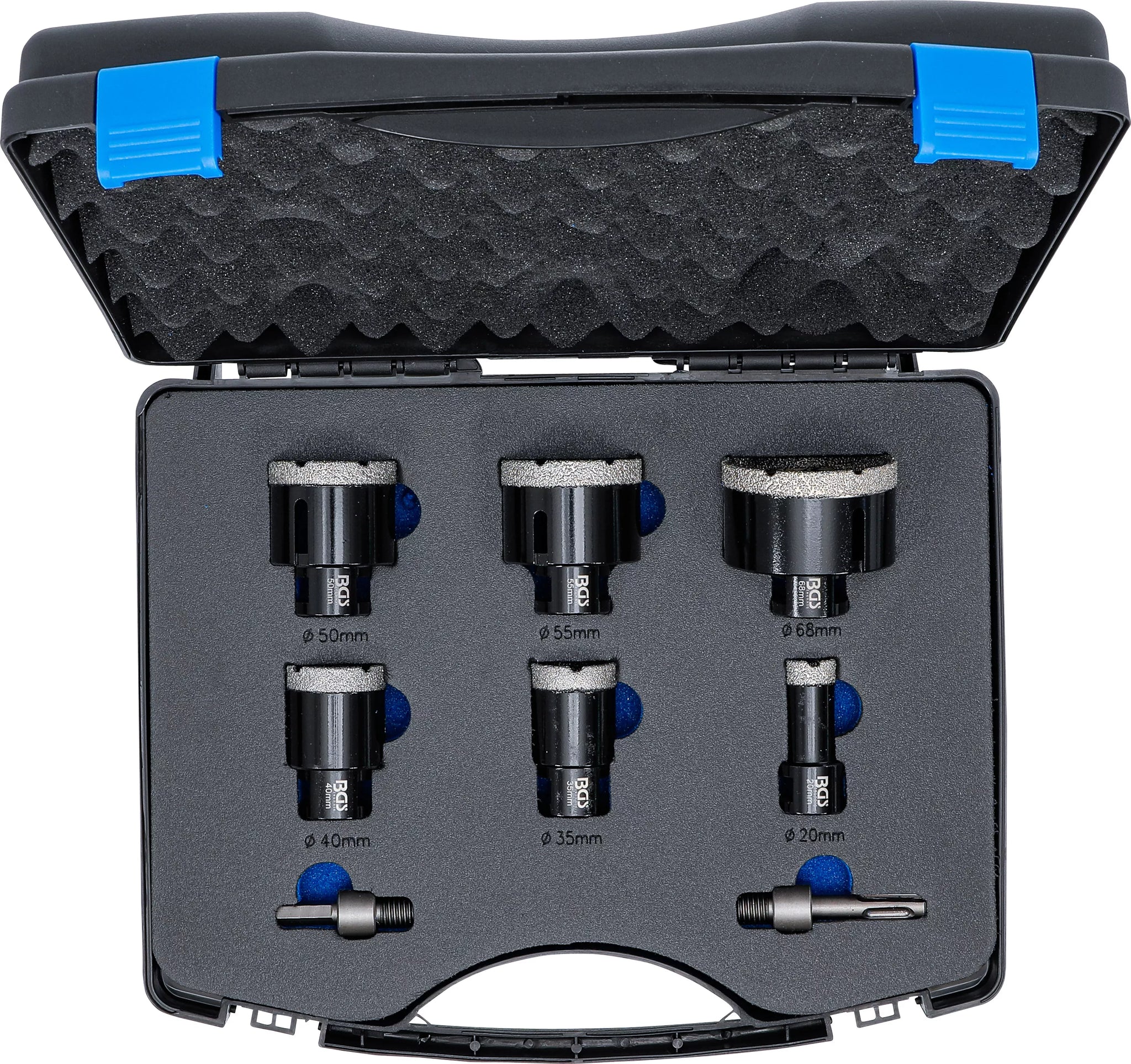 Diamant-borrkrona-sats | 20 - 68 mm | 8 delar. BGS 74275