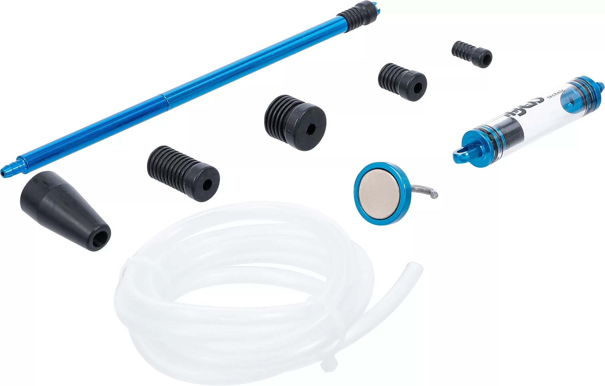 - Anslutningsslang med tänd- respektive glödstiftgänga-adapter till 8 -10 -12 -14 -18 mm + universal-konadapter