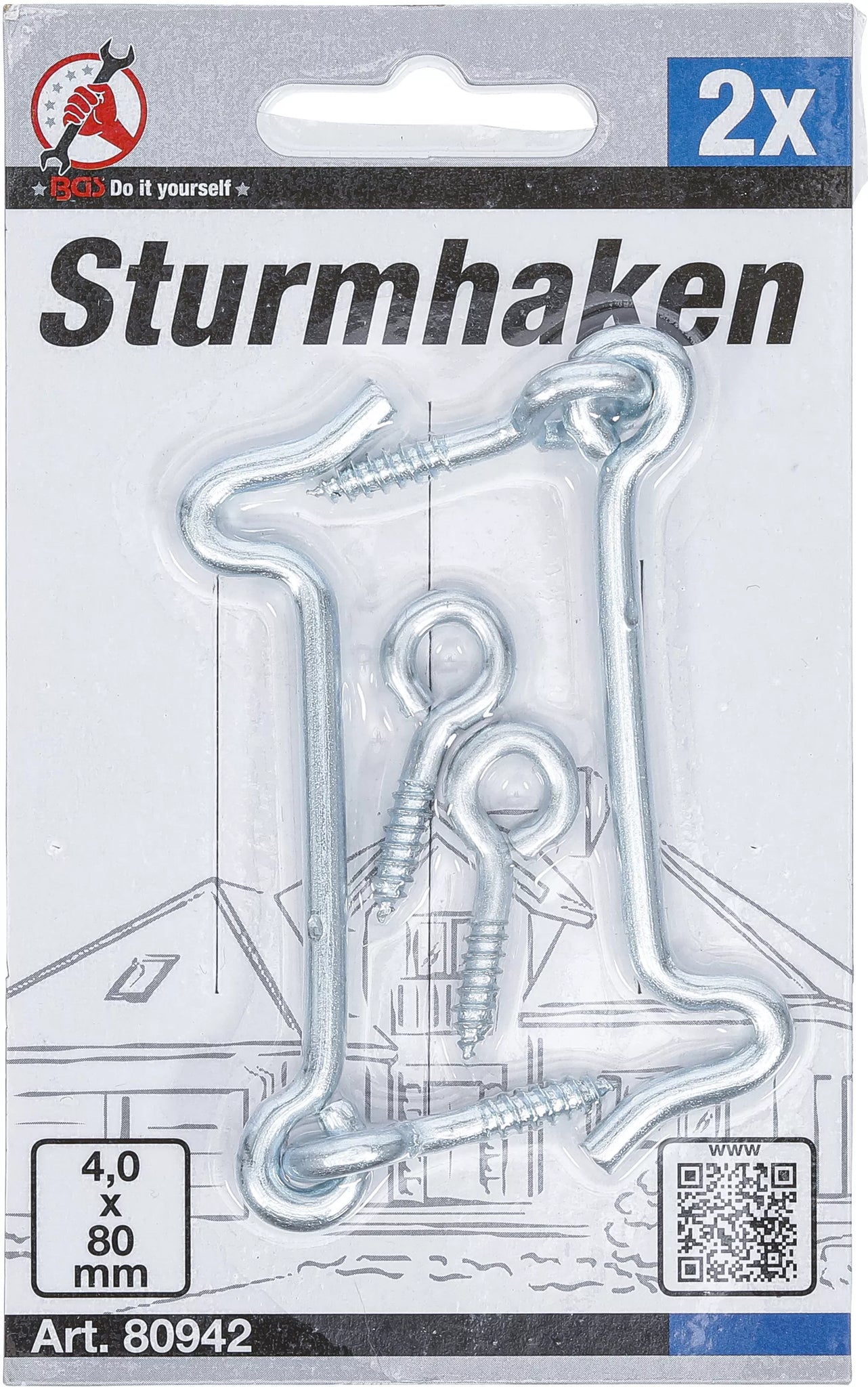 Dörrhake | 4,0 x 80 mm | 2 delar. BGS Diy 80942