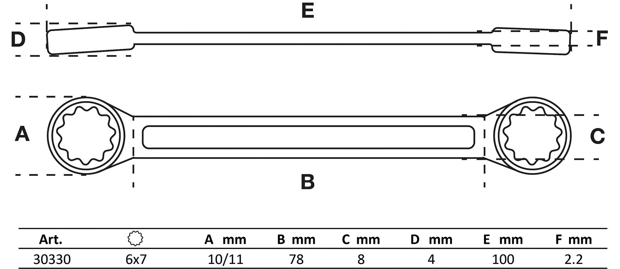 Dubbel-ringnyckel | extra platt | 6 x 7 mm. BGS 30330