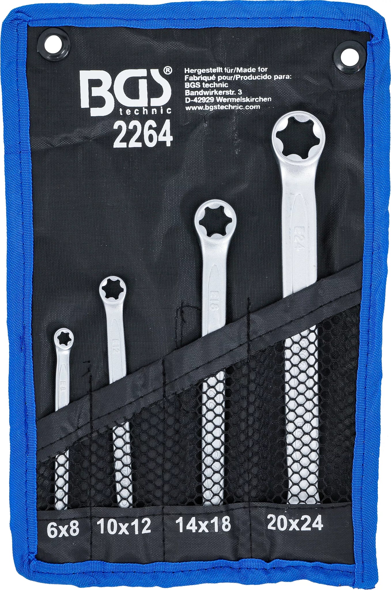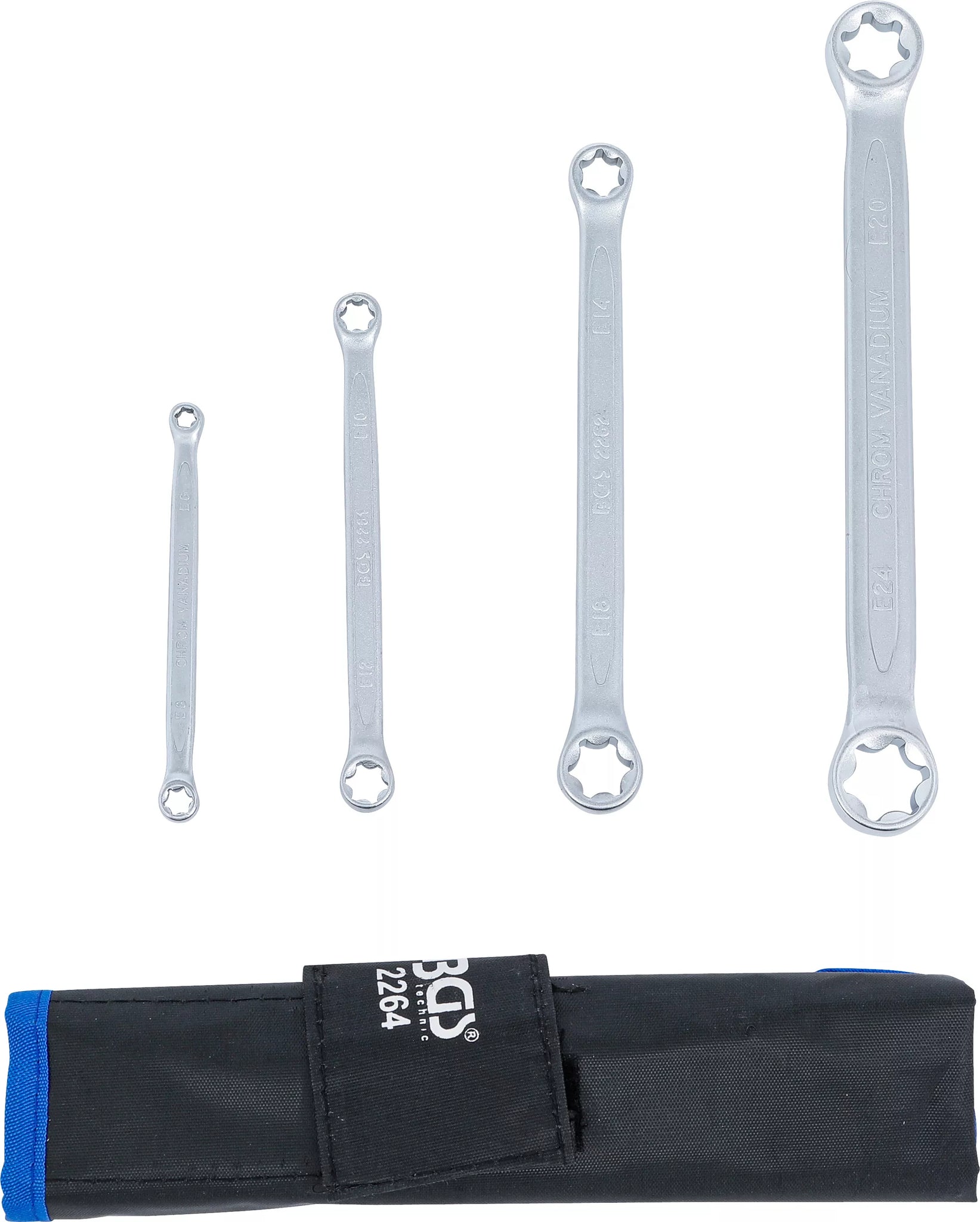 Dubbel-ringnyckel-sats med E-profil-ringar | E6 x E8 - E20 x E24 | 4 delar. BGS 2264