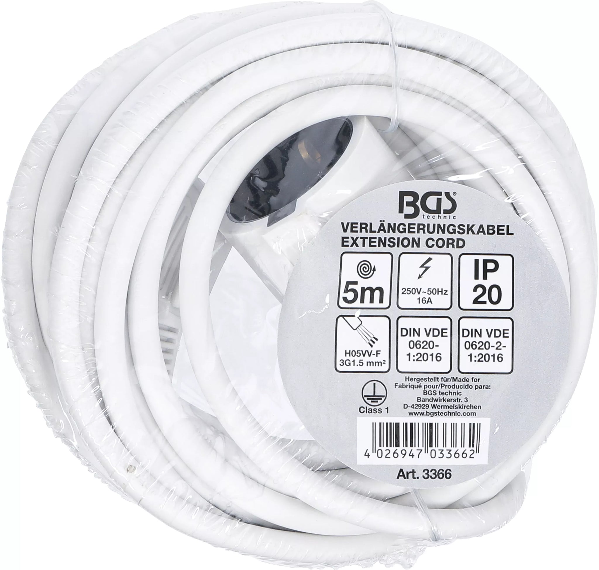 Förlängningskabel | 5 m | 3 x 1,5 mm² | IP 20. BGS 3366