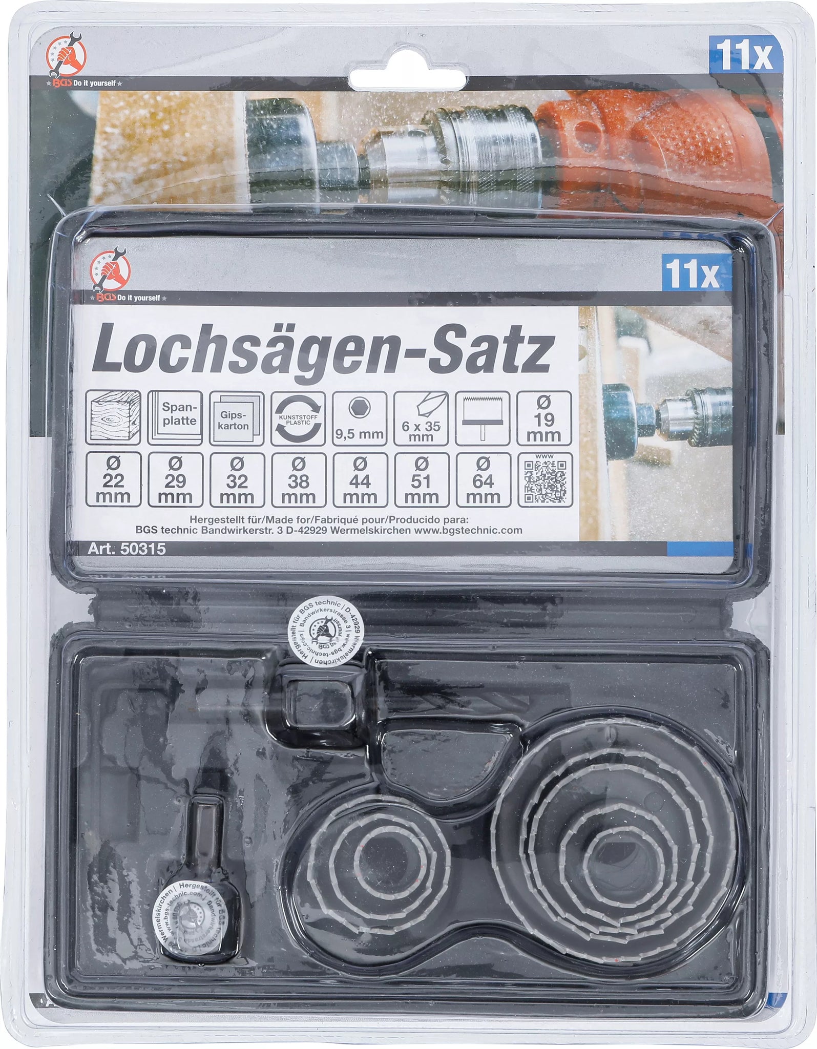 Hålsåg-sats | Ø 19 - 64 mm | Djup 24 mm | 11 delar. BGS Diy 50315
