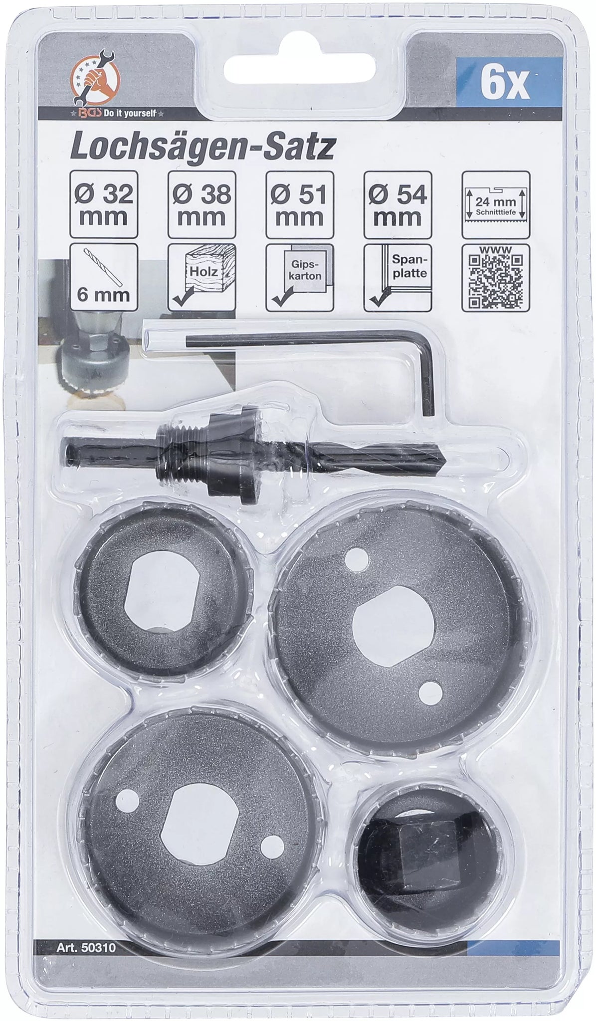 Hålsåg-sats | Ø 32 - 54 mm | Djup 24 mm | 6 delar. BGS Diy 50310