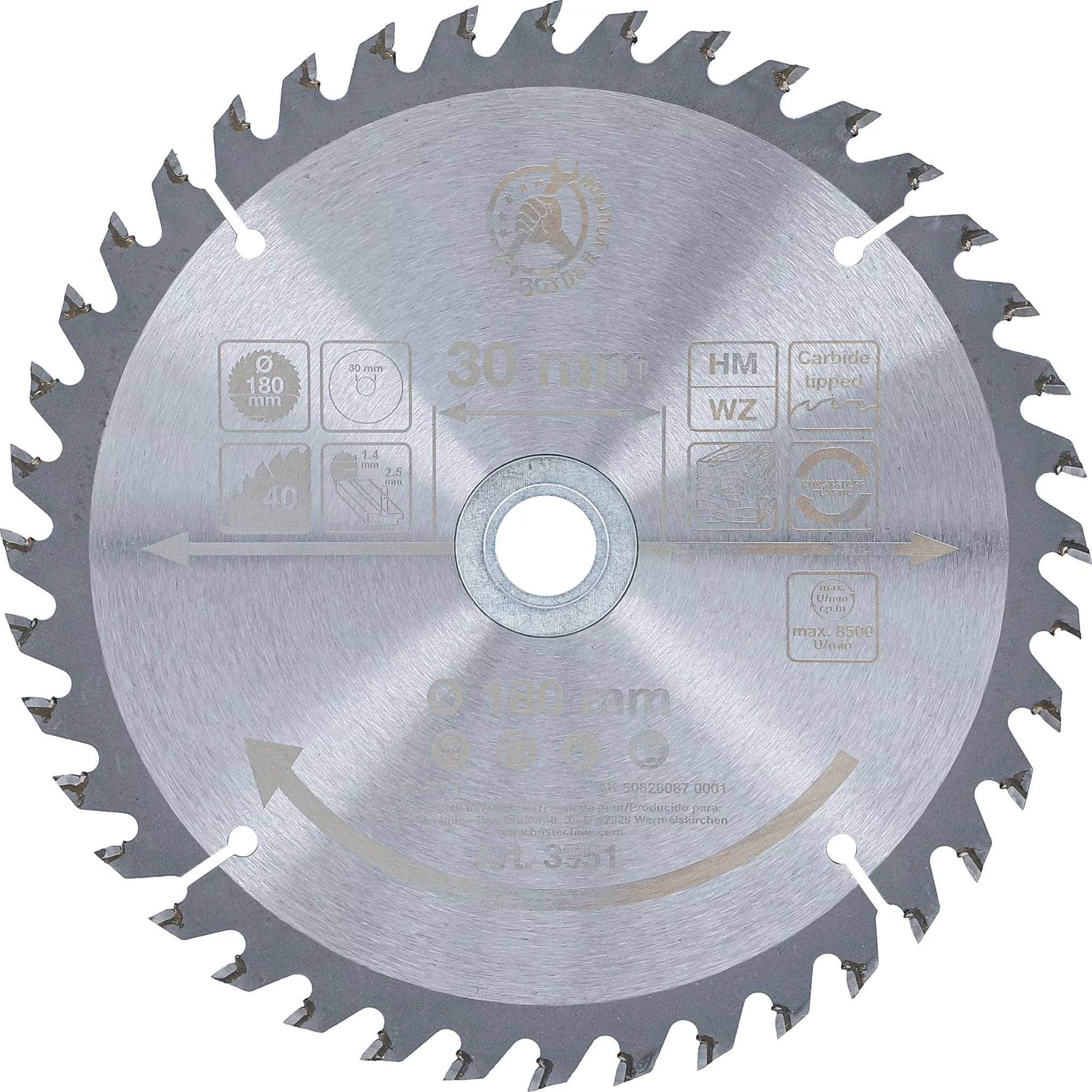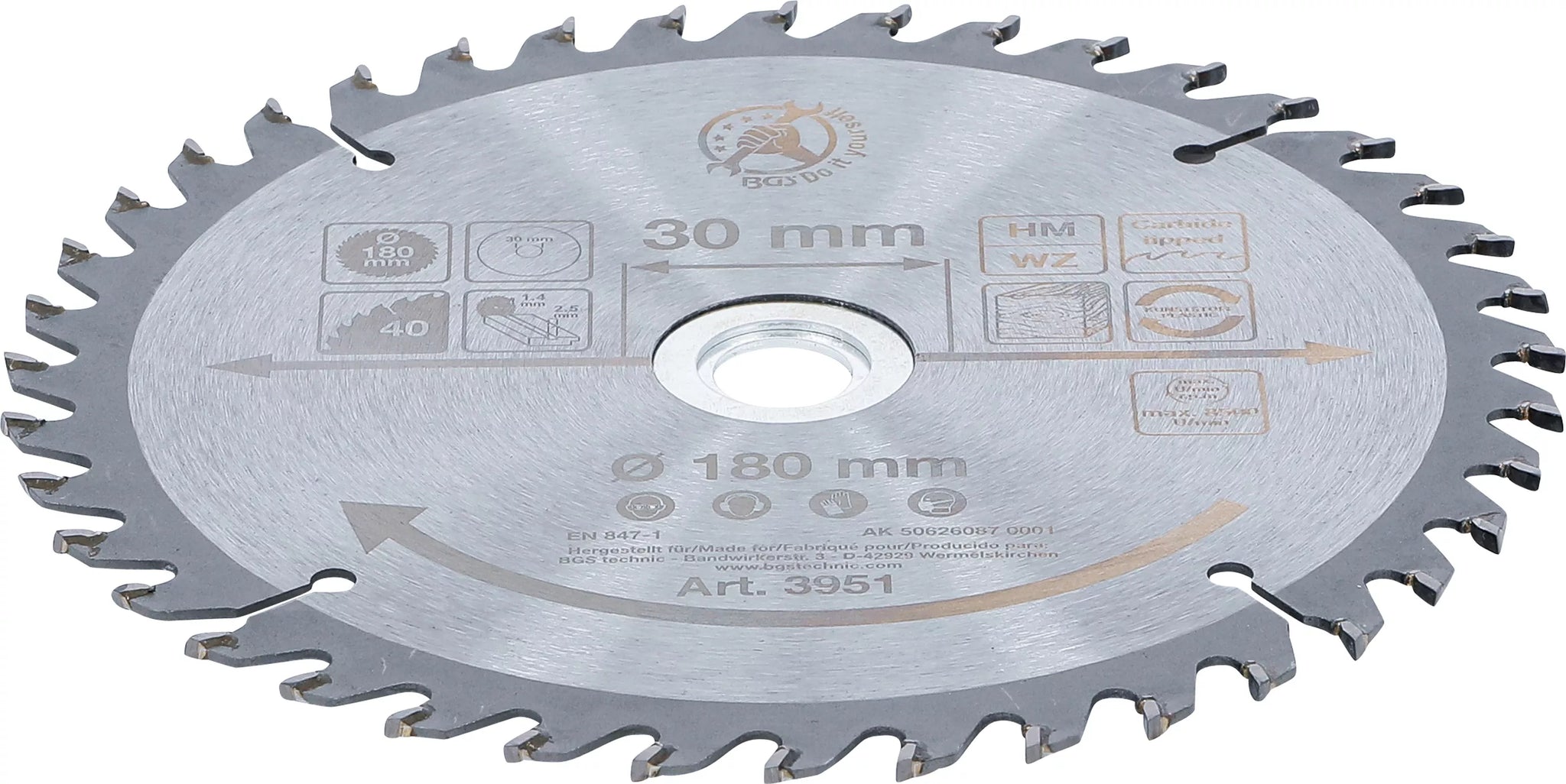 Hårdmetall-Cirkelsågblad | Ø 180 x 30 x 2,5 mm | 40 tänder. BGS Diy 3951
