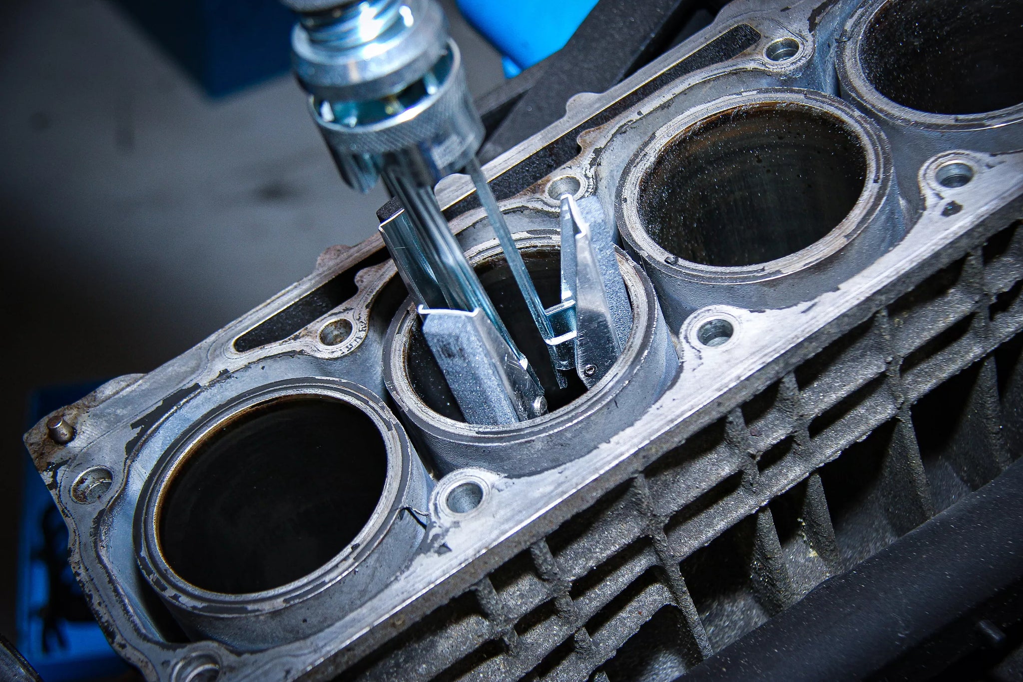 - För bearbetning av cylinderloppen innan nya kolvringar monteras