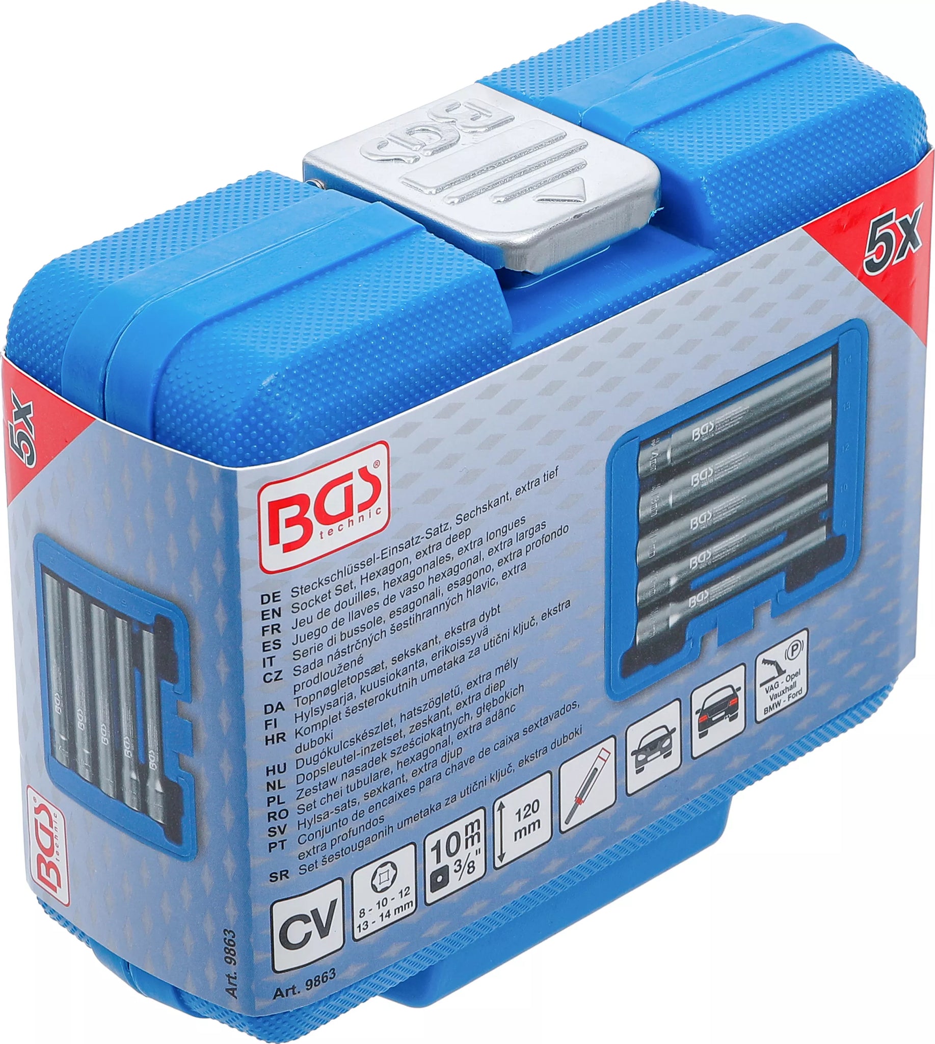 Hylsa-sats, sexkant, extra djup | Inre fyrkant 10 mm (3/8") | 8 - 14 mm | 5-tlg.. BGS 9863