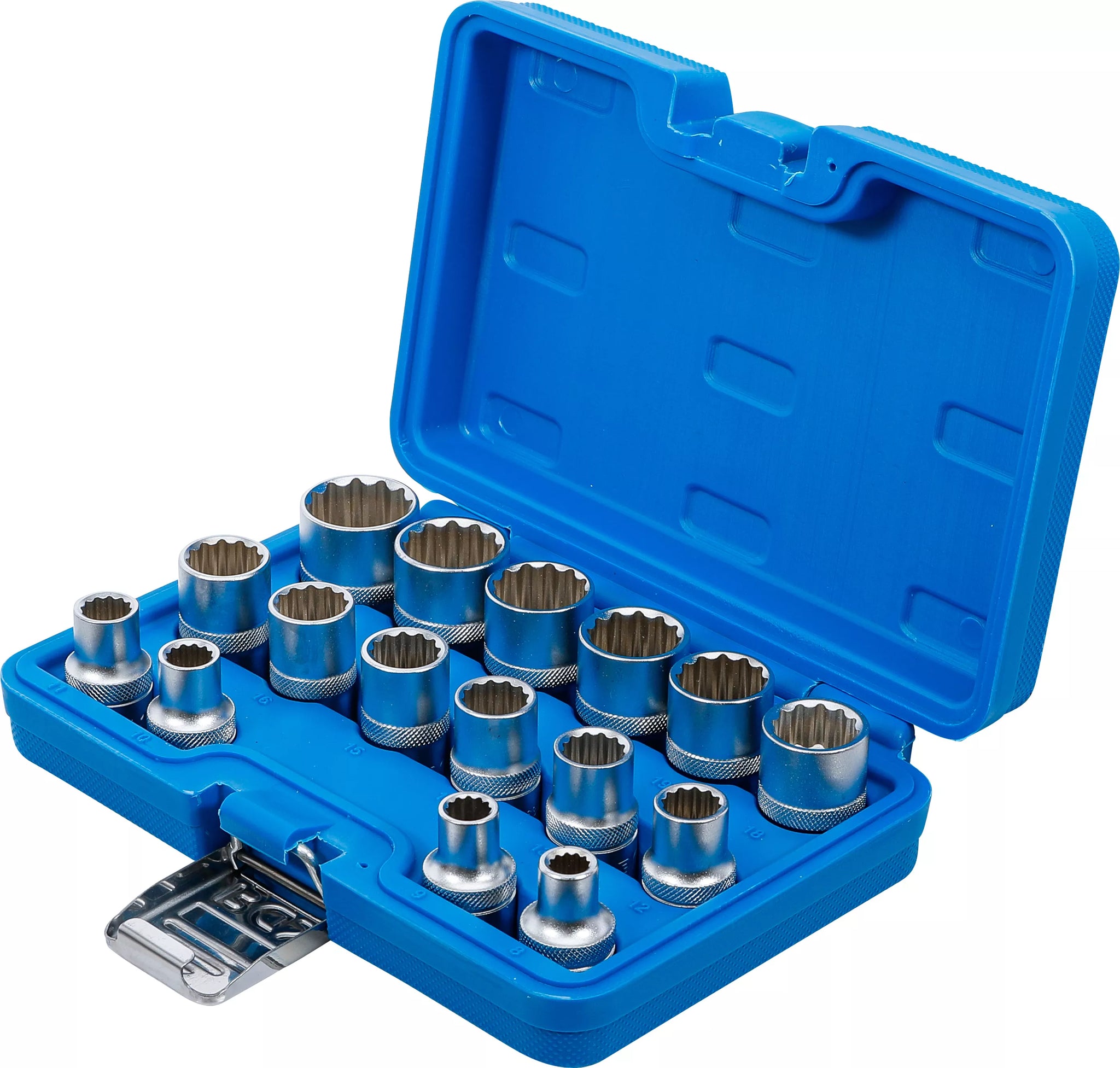 - Hylsor tolvkant, 12,5 mm (1/2"): 8 - 9 - 10 - 11 - 12 - 13 - 14 - 15 - 16 - 17 - 18 - 19 - 20 - 21 - 22 - 24 mm