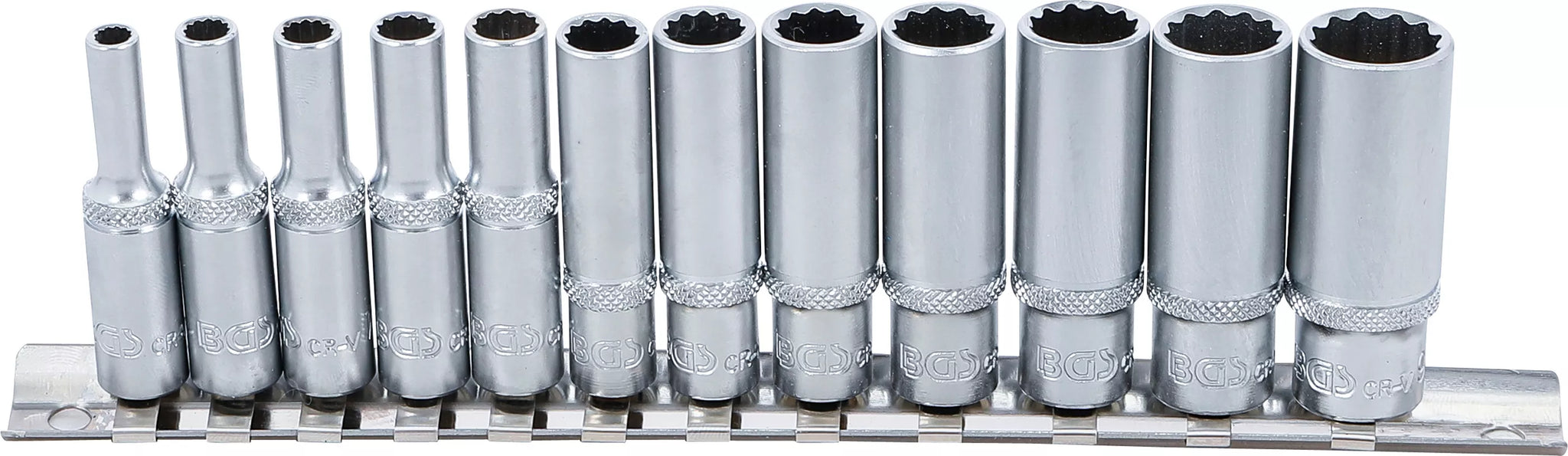Hylsa-sats Tolvkant, djup | 6,3 mm (1/4") | Tumsstorlekar | 12 delar. BGS 2757