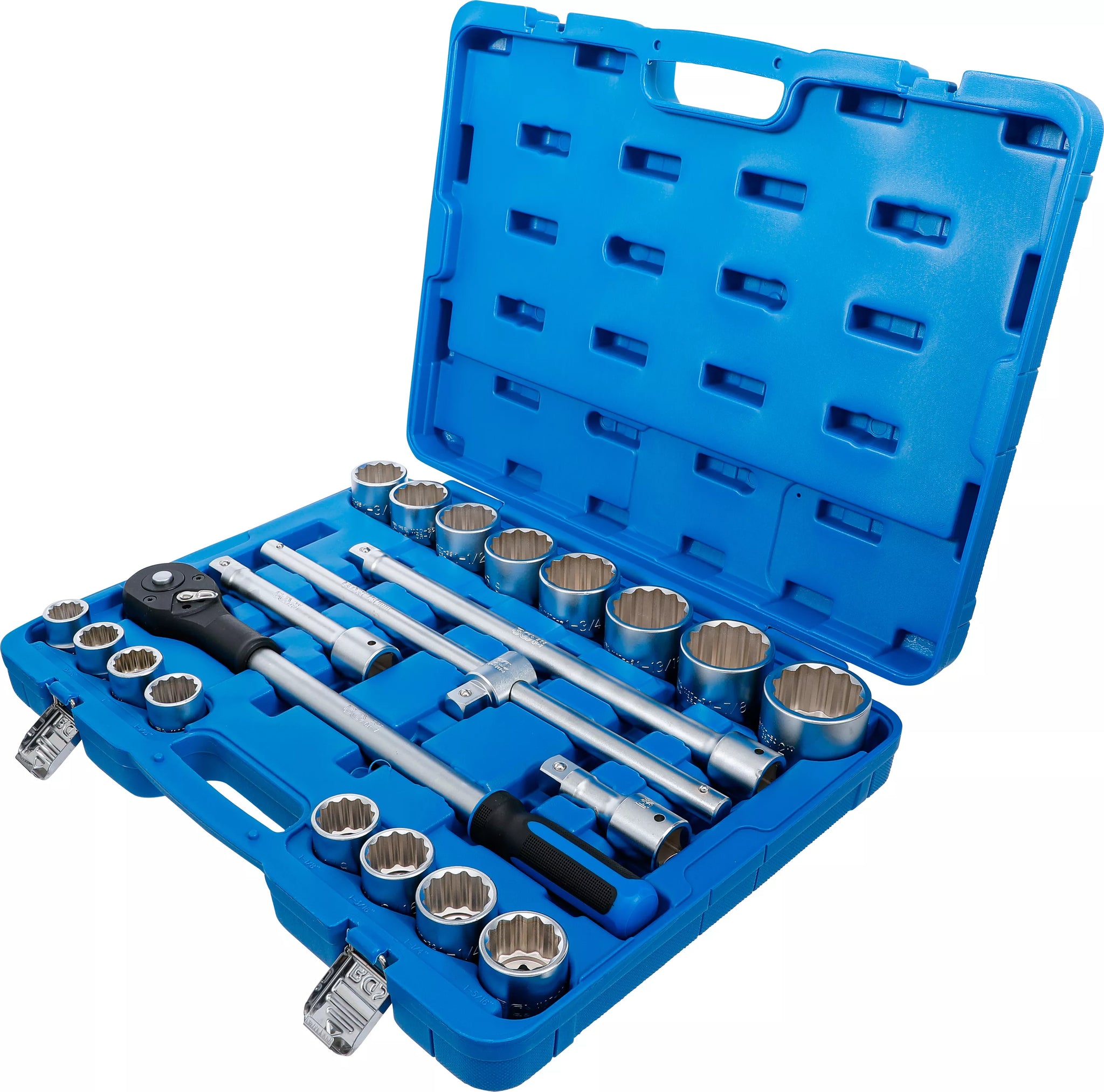 - 16 x Hylsa tolvkant: 7/8" - 15/16" - 1" - 1.1/16" - 1.1/8" - 1.3/16" - 1.1/4" - 1.5/16" - 1.3/8" - 1.7/16" - 1.1/2" - 1.5/8" - 1.3/4" - 1.13/16" - 1.7/8" - 2"