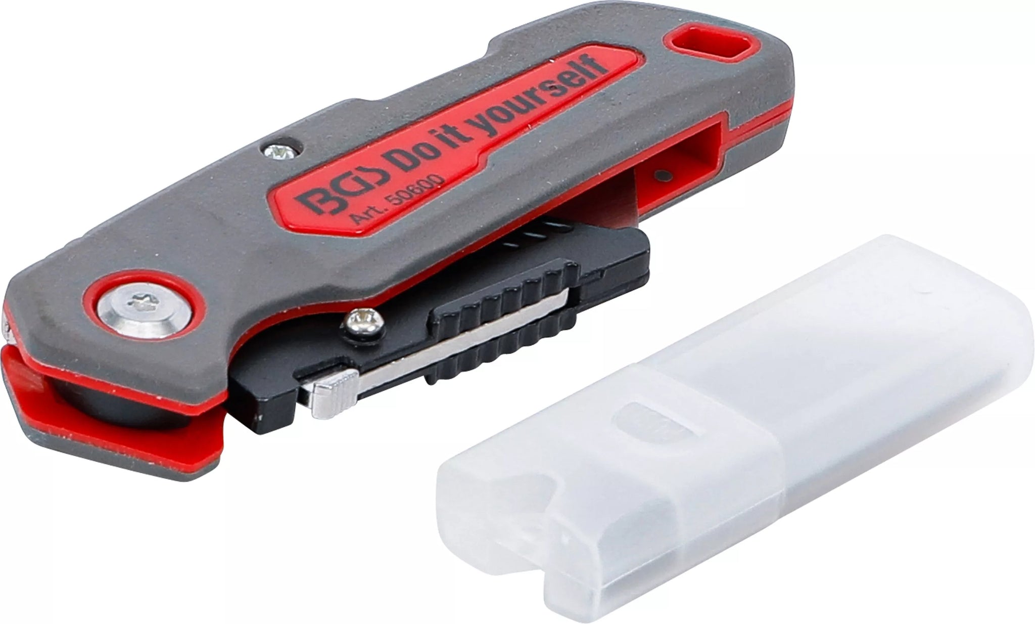 - Monterat blad och extra bladlåda med 4 reserv-trapetsblad (60 x 19 mm)