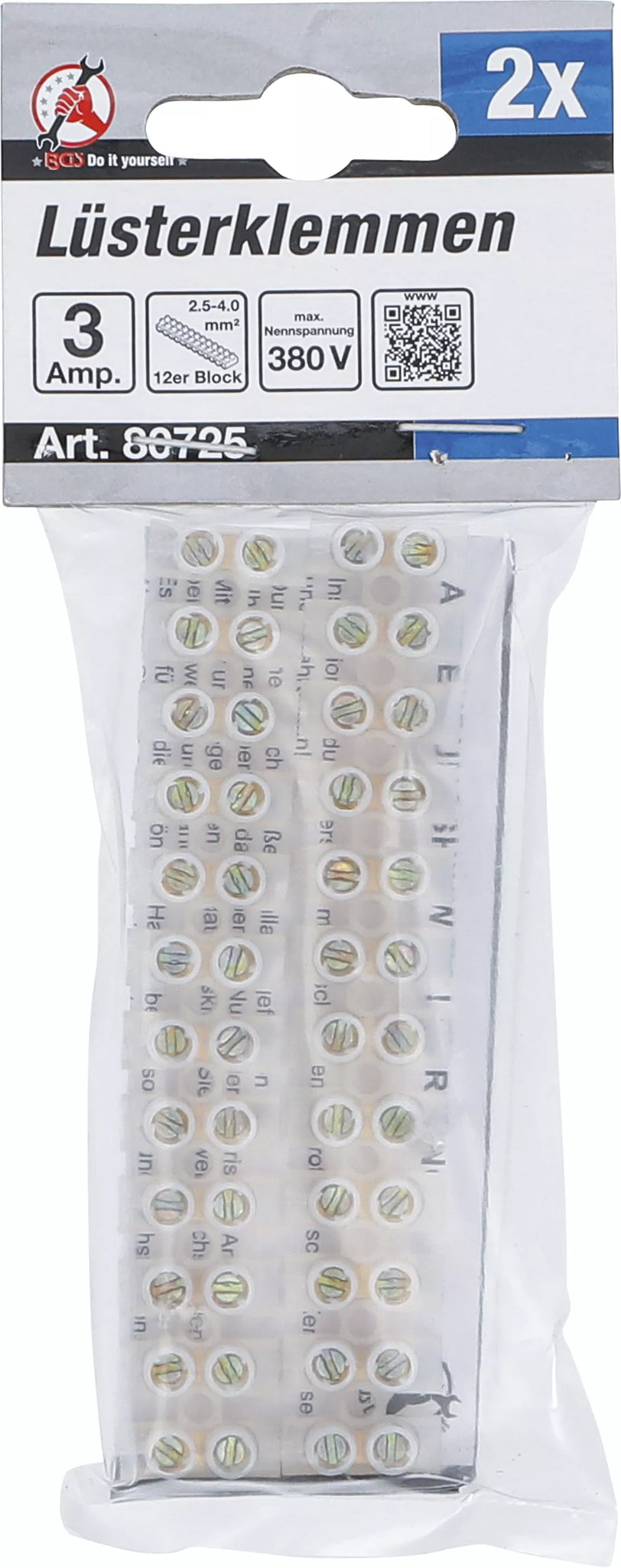 Klämmor för ljuskronor | 2,5 mm² | 3 amp. | 2 st. | Med 12 block. BGS Diy 80725