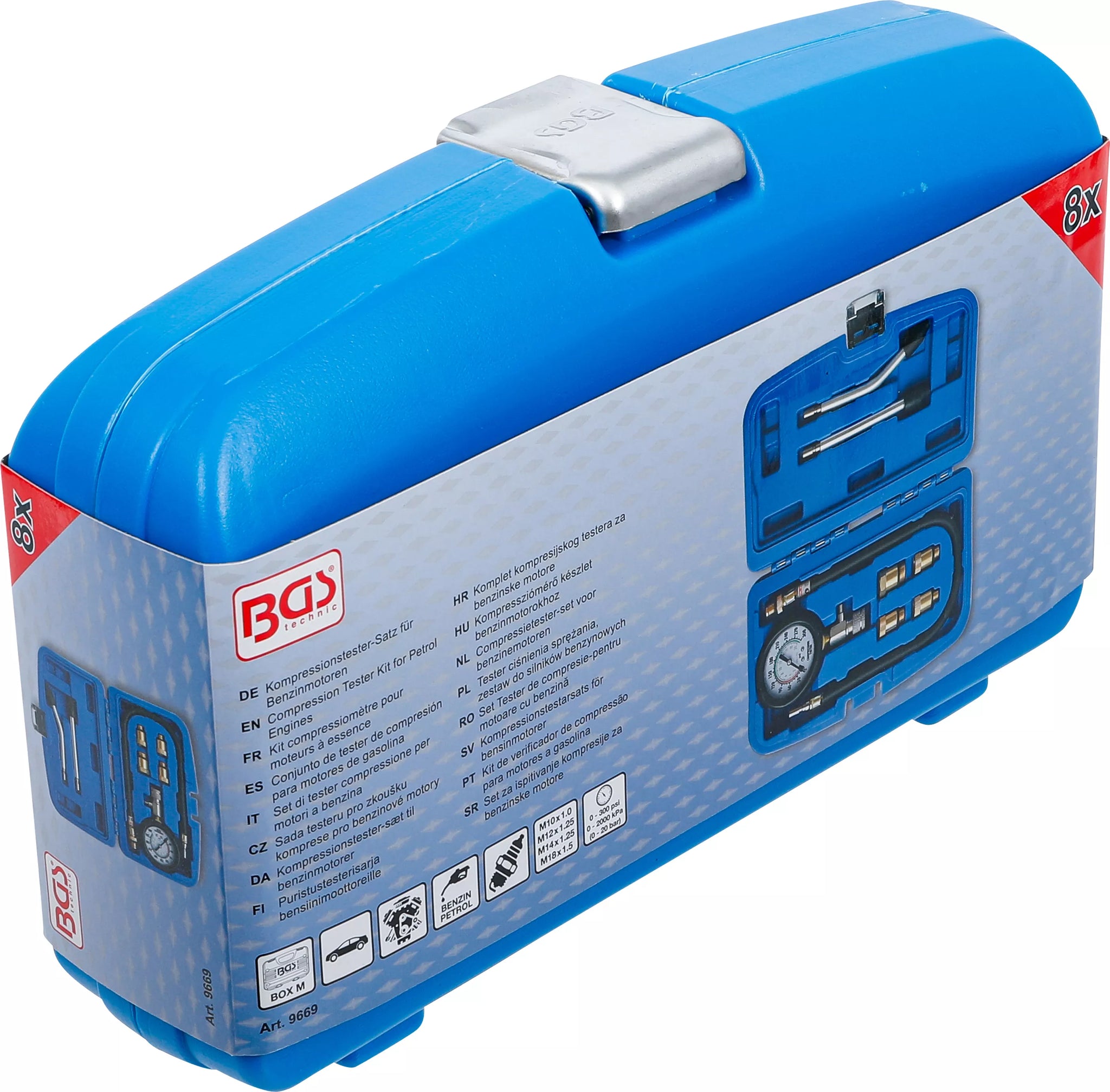Kompressionstestarsats för bensinmotorer. BGS 9669