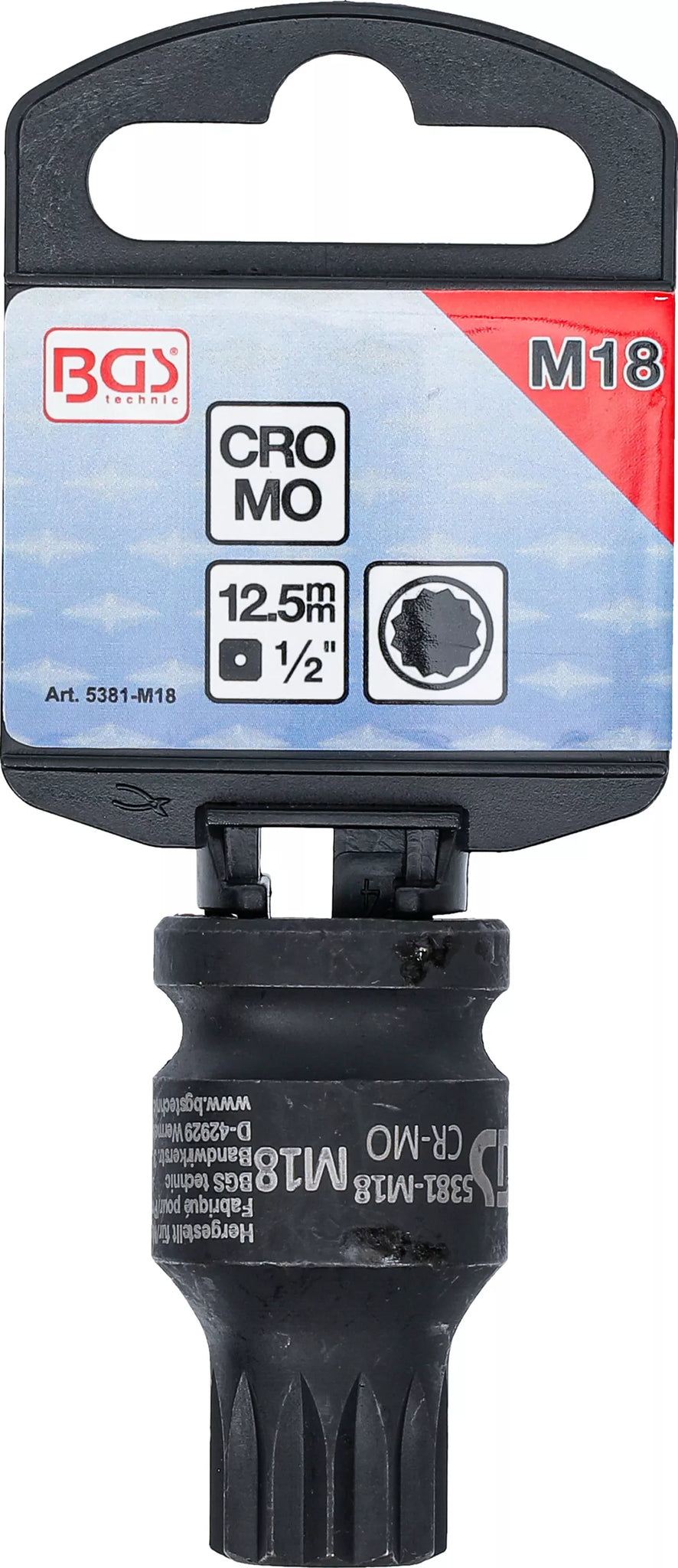 Kraft-Bit-Insats | Längd 43 mm | 12,5 mm (1/2") | Inre mångtandad (för XZN) M18. BGS 5381-M18
