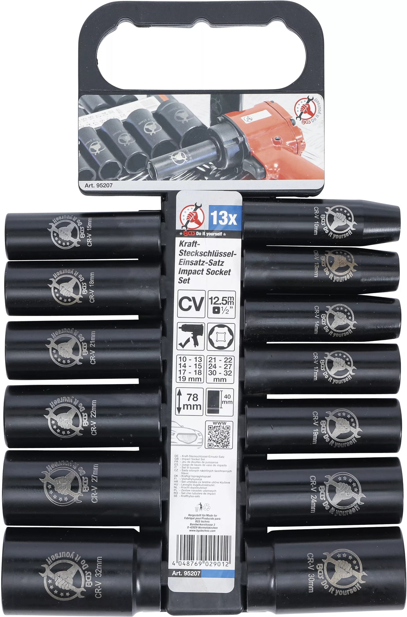 Krafthylsa-sats | 12,5 mm (1/2") | 10 - 32 mm | 13 delar. BGS Diy 95207