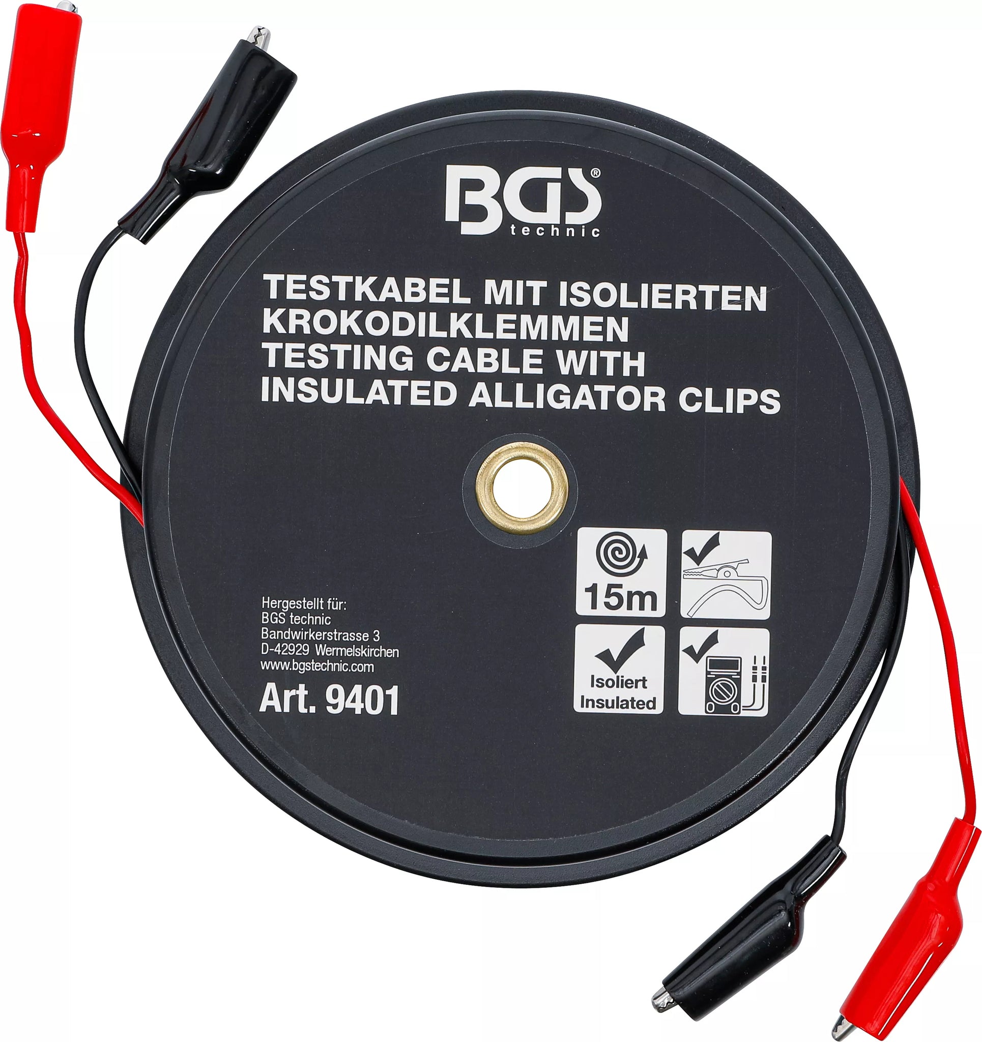 Krokodilklämma-kabelbox | 15 m. BGS 9401