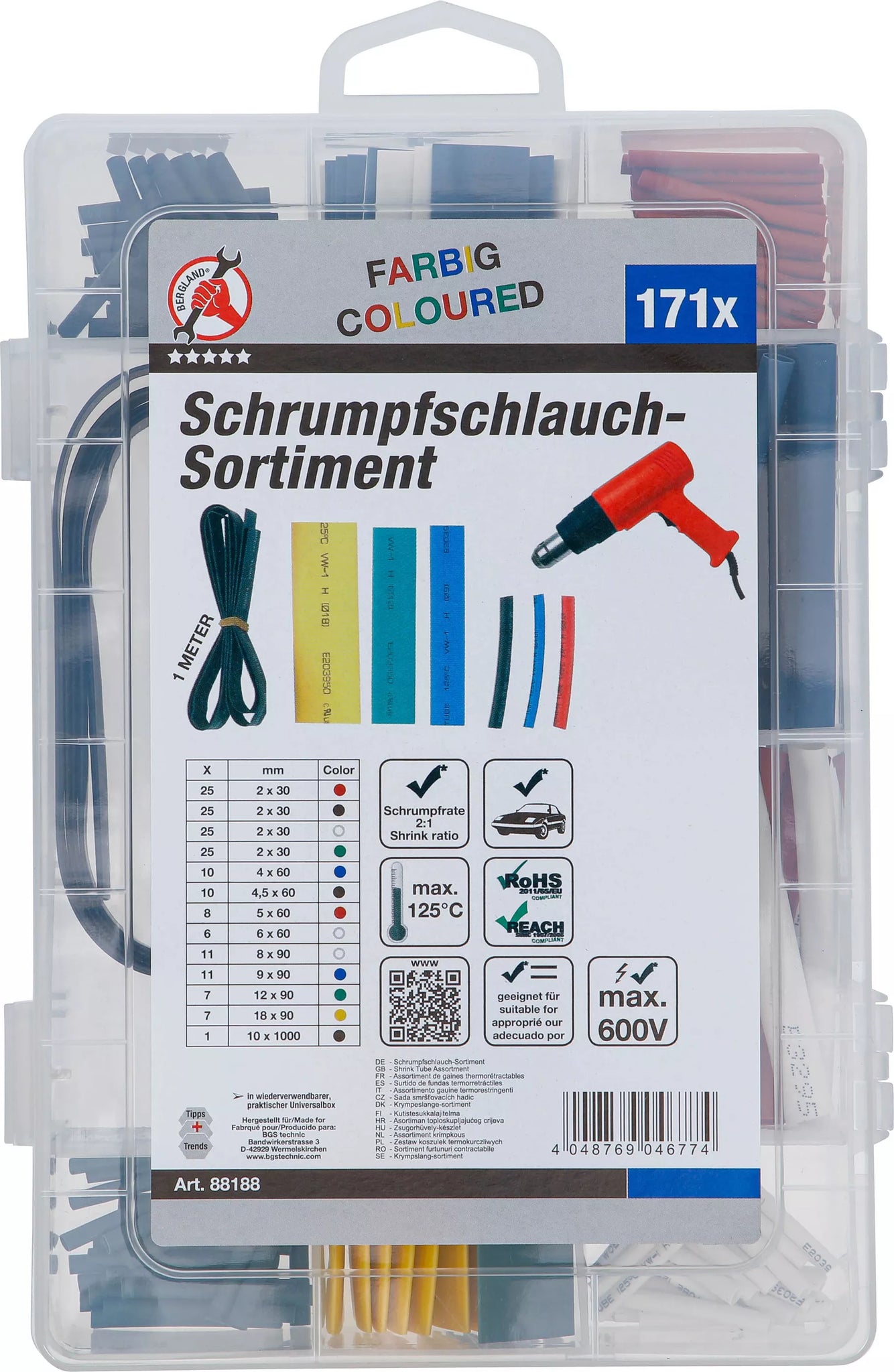 Krympslang-sortiment | Kulörta | 171 delar. BGS Diy 88188