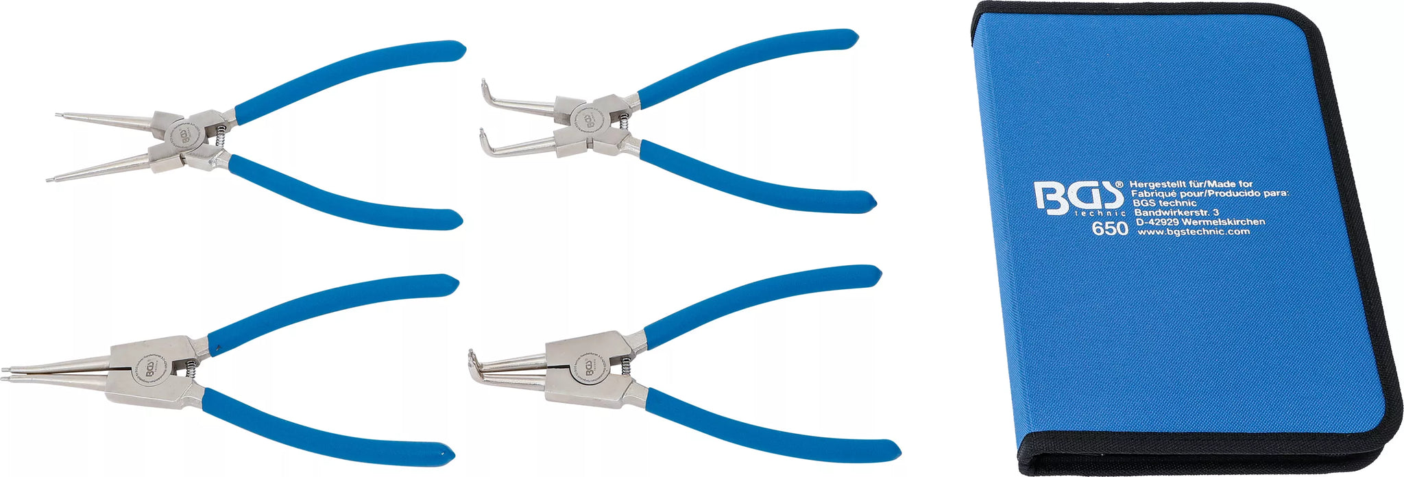 Låsringstång-sats | 225 mm | 4 delar. BGS 650