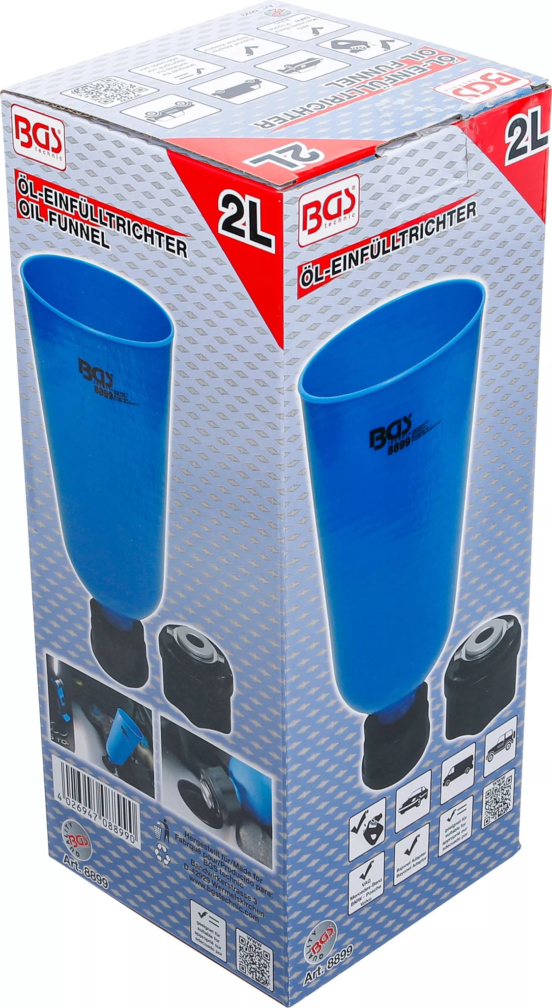 Olje-Påfyllningstratt med bajonettadapter för VAG, Mercedes-Benz, BMW, Porsche, Volvo. BGS 8899