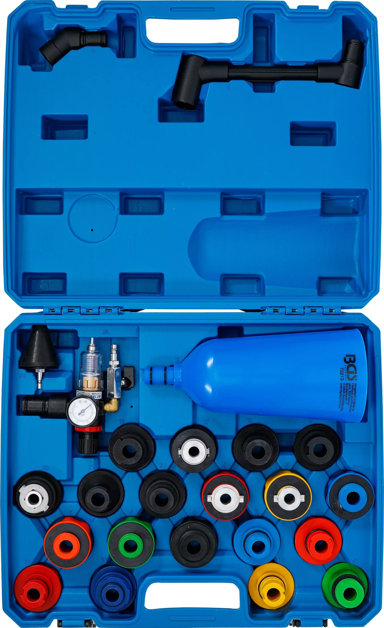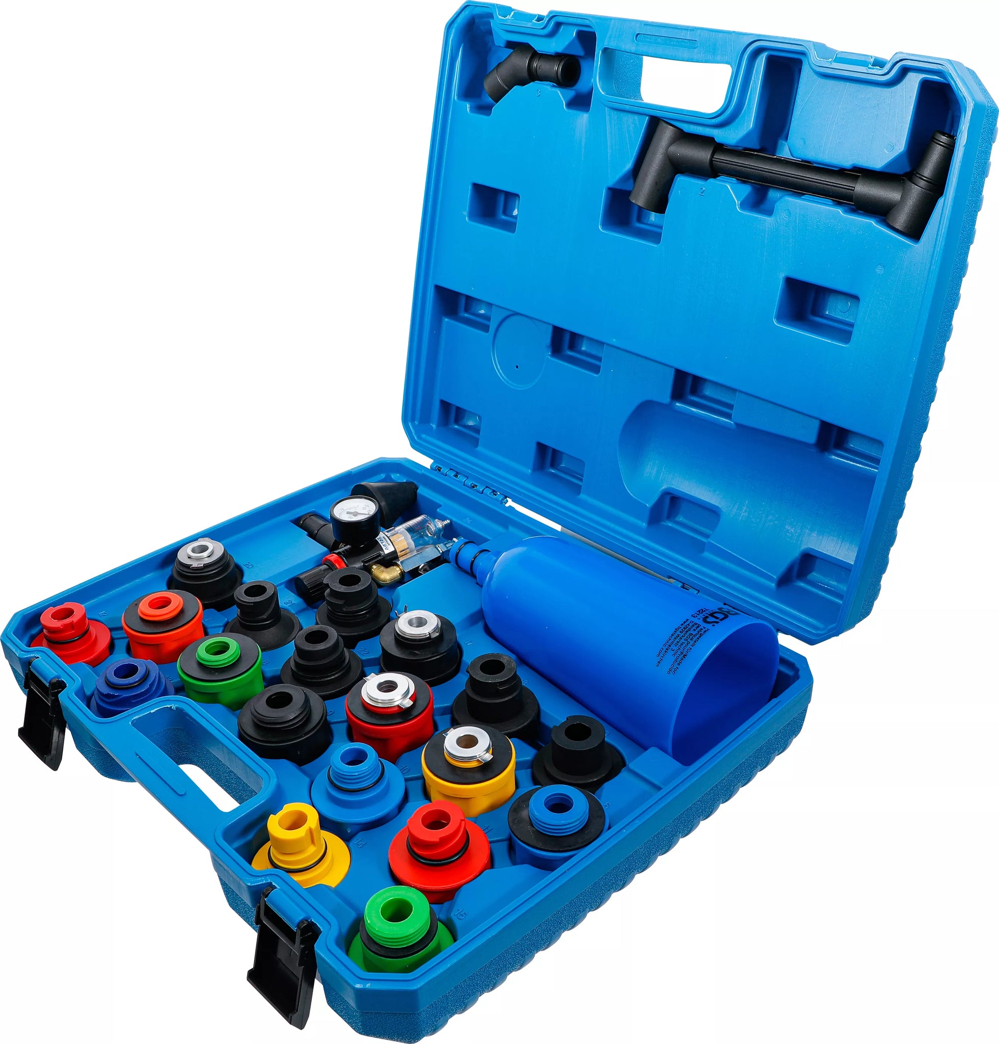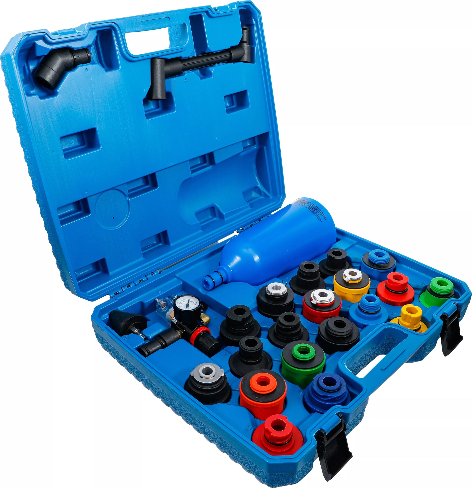 - Omfattar 19 specifika adaptrar för läckagefri anslutning till motorns oljepåfyllningsöppning