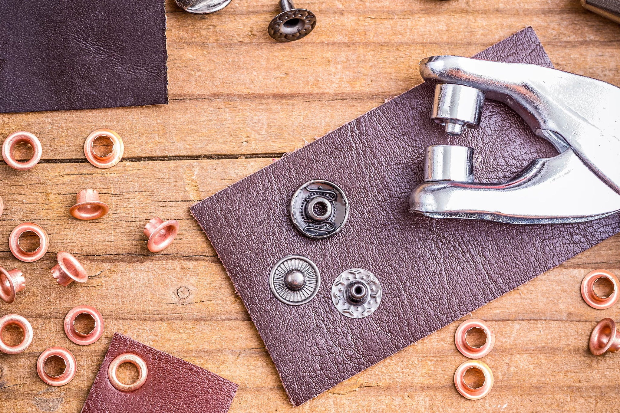 - För hålstansning och inpressning av öljetter i läder, textiler eller gummiförband
