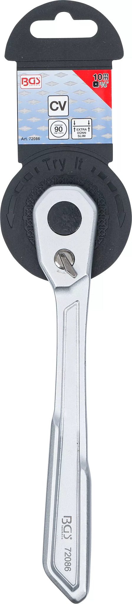 Omställbart spärrhandtag | extra platt | Fintandat | 10 mm (3/8"). BGS 72086