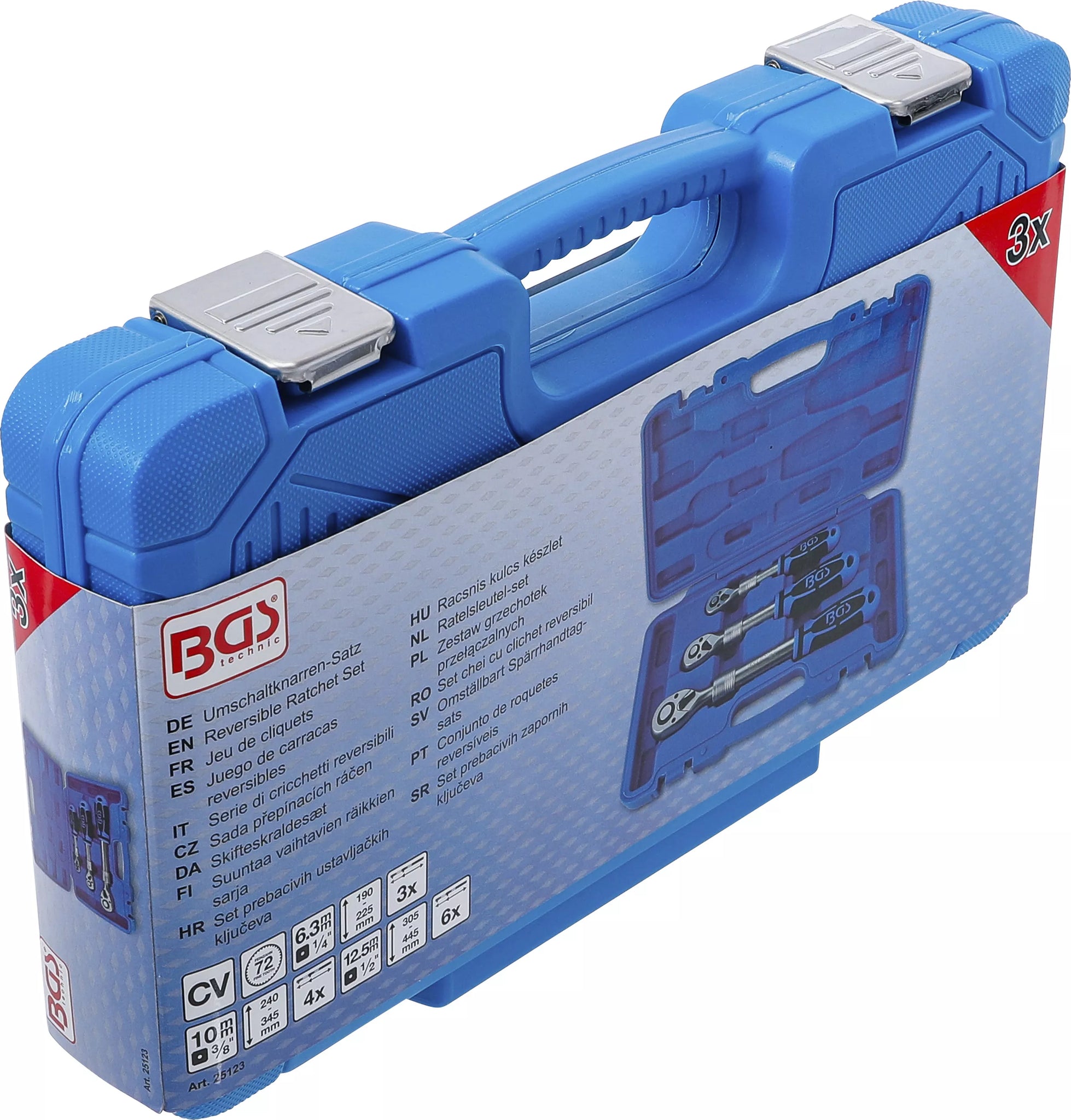 Omställbart Spärrhandtag-sats | utdragbart | 6,3 mm (1/4") - 10 mm (3/8") - 12,5 mm (1/2") | 3 delar. BGS 25123