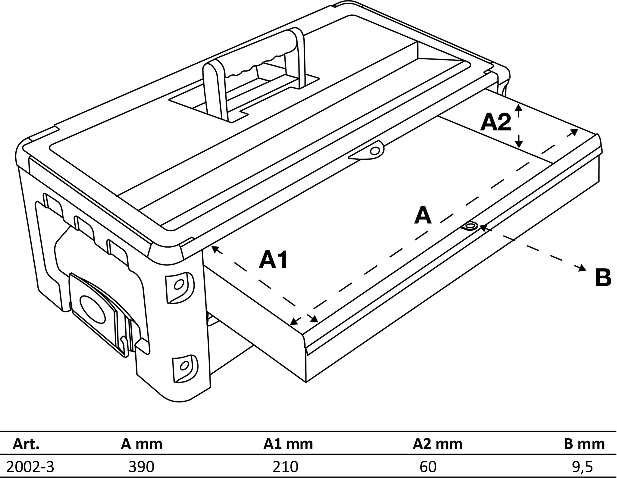 - Lådornas inre mått (BxHxD): 390 x 210 x 60 mm