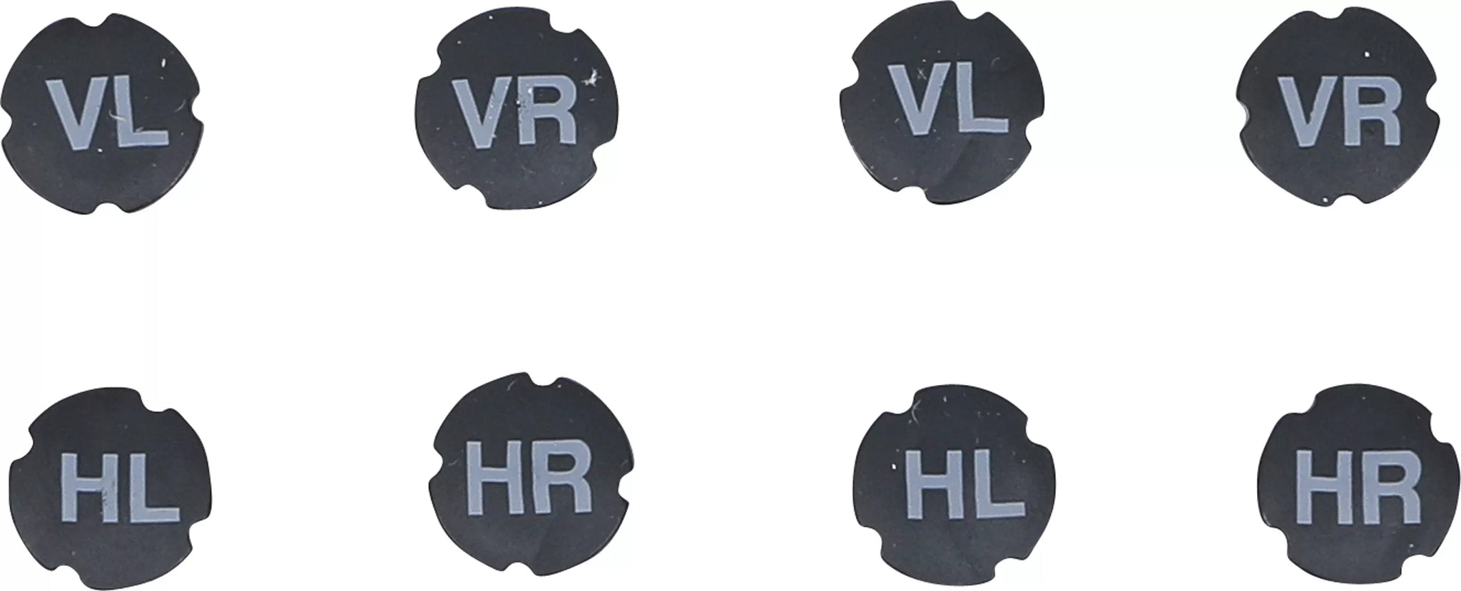 - 2 stycken av varje med påskriften VL, HL, VR och HR