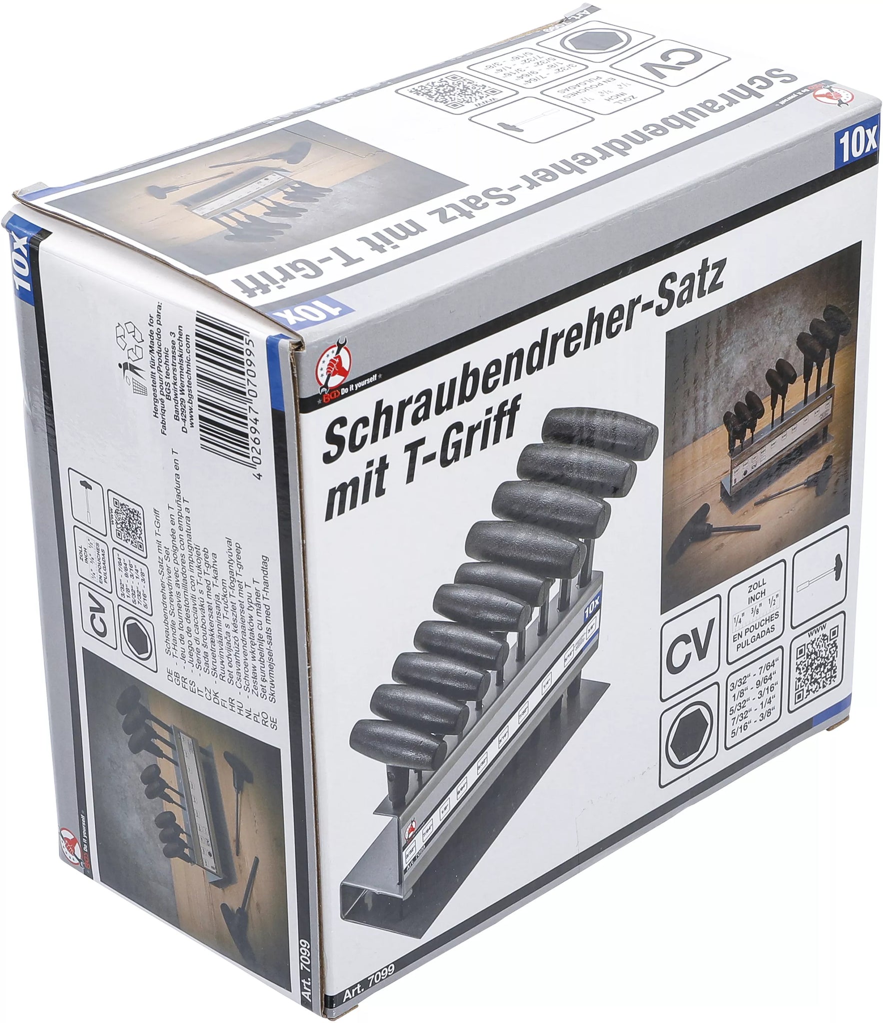 Skruvmejsel-sats med T-handtag | Tumsstorlekar | Inre sexkant 3/32" - 3/8" | 10 delar. BGS Diy 7099