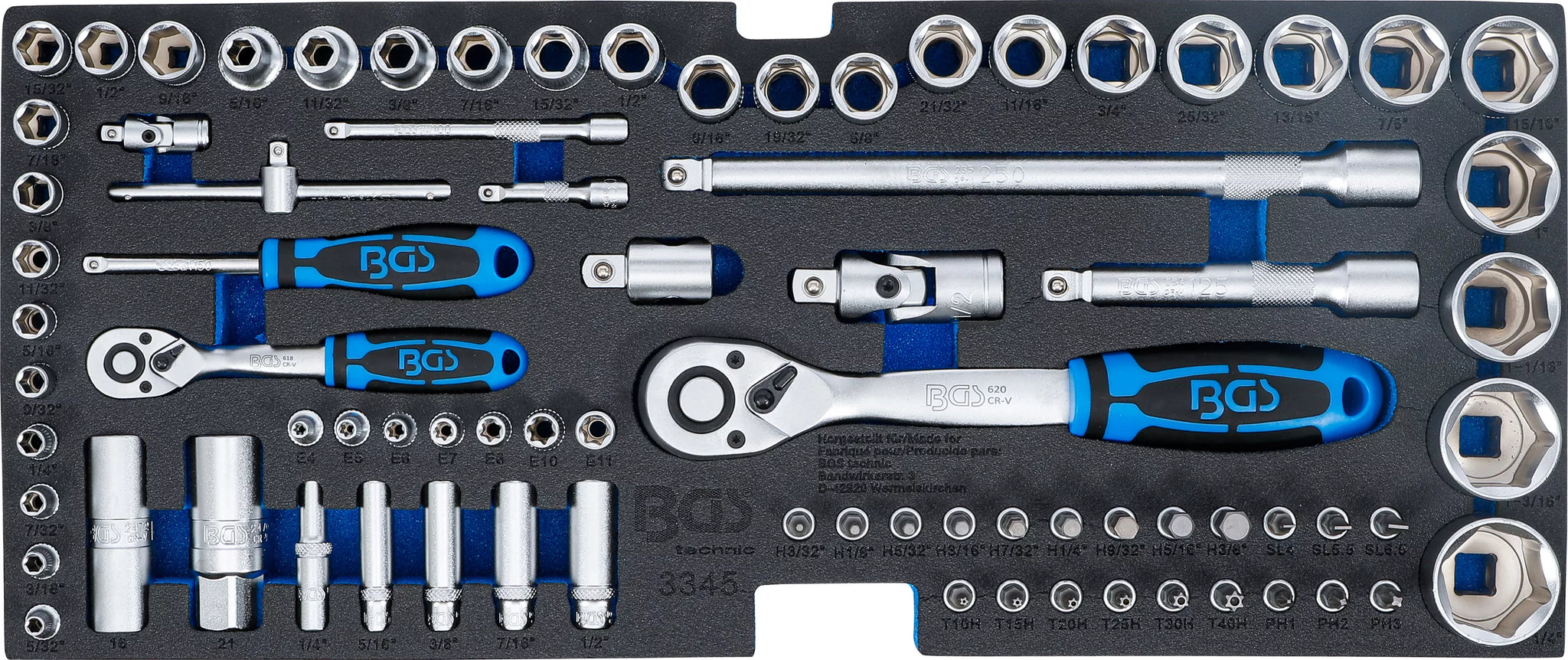 Skumplastinlägg för BGS 3312: Hylsnyckelsats | 6,3 mm (1/4") / 12,5 mm (1/2") | Tumsstorlekar | 78 delar. BGS 3345