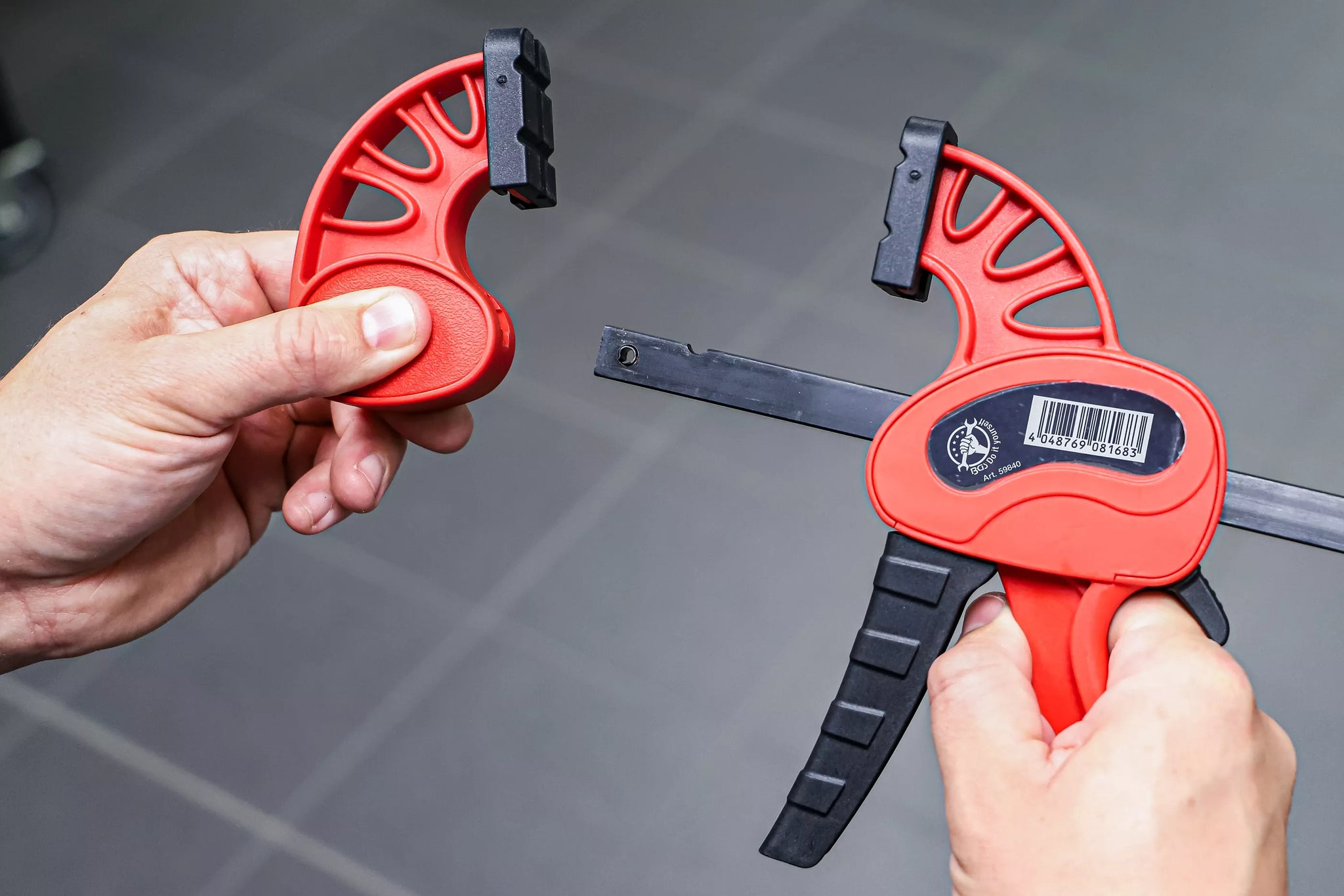 - Men praktiskt öppningsmekanik, som möjliggör enkelt, verktyglöst byte respektive ändring från spänn- till expanderingsfunktion