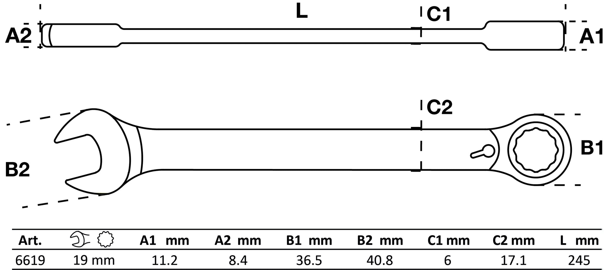 Nyckelstorlek 2: 19 mm