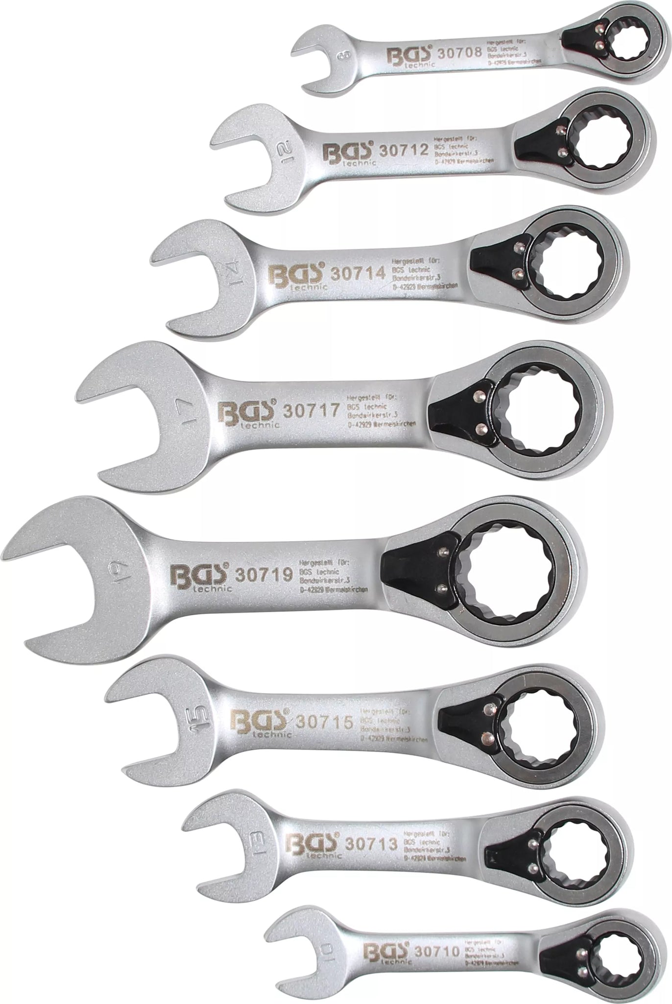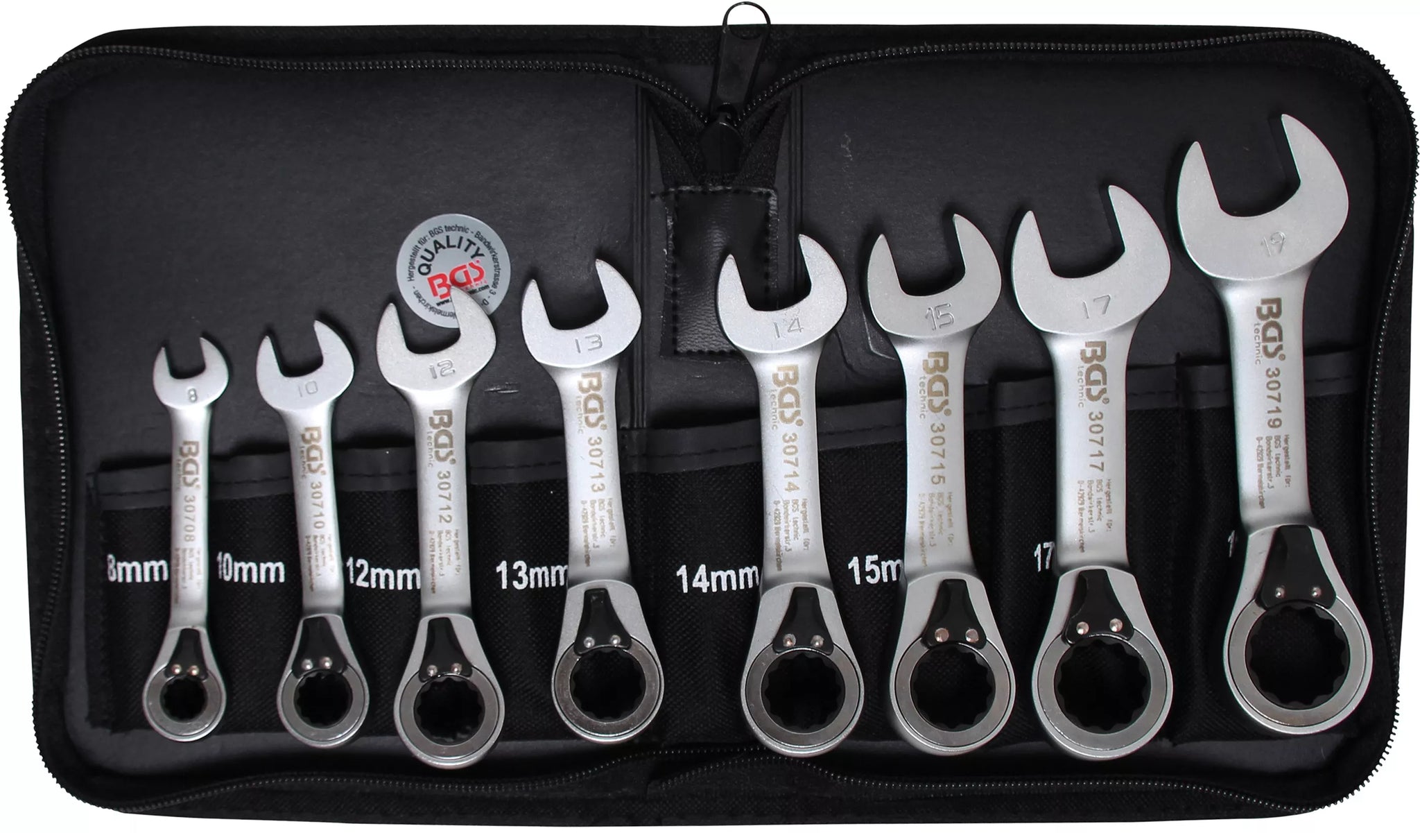 Spärring-U-nyckel-sats | med omkastare | 8 - 19 mm | 8 delar. BGS 30720