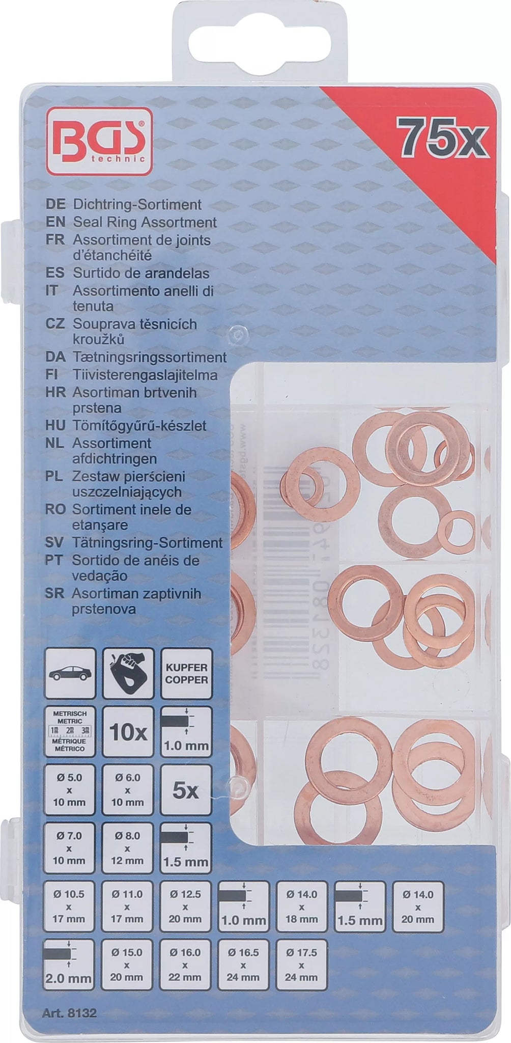 Tätningsring-Sortiment | Koppar | Metrisk | För oljeavtappningsskruvar | 75 delar. BGS 8132