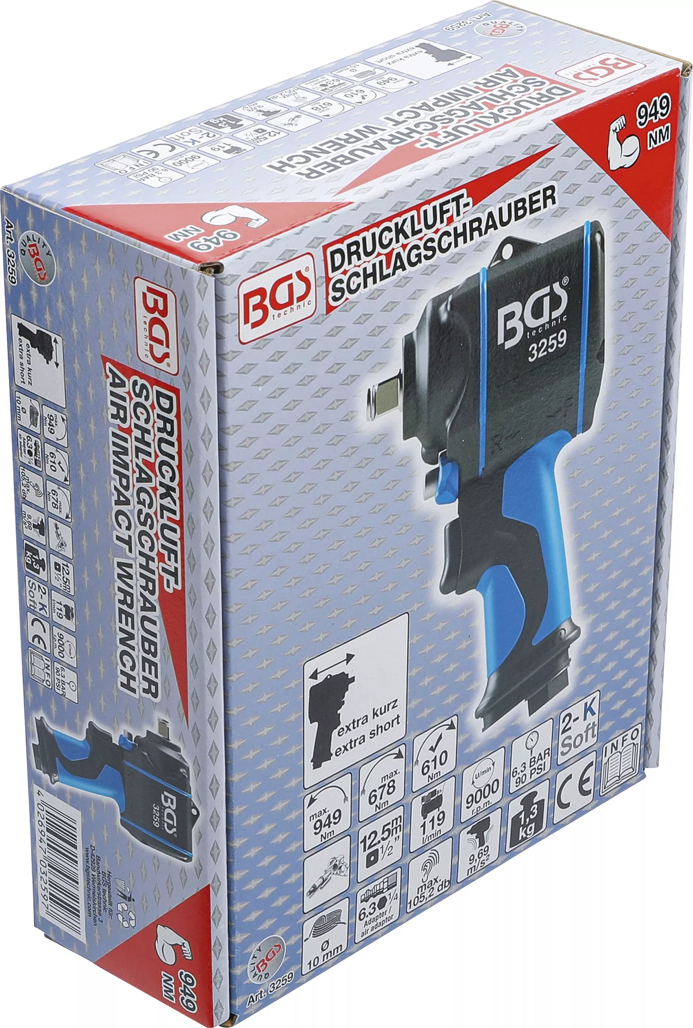 Tryckluft-Mutterdragare | 12,5 mm (1/2") | 949 Nm. BGS 3259