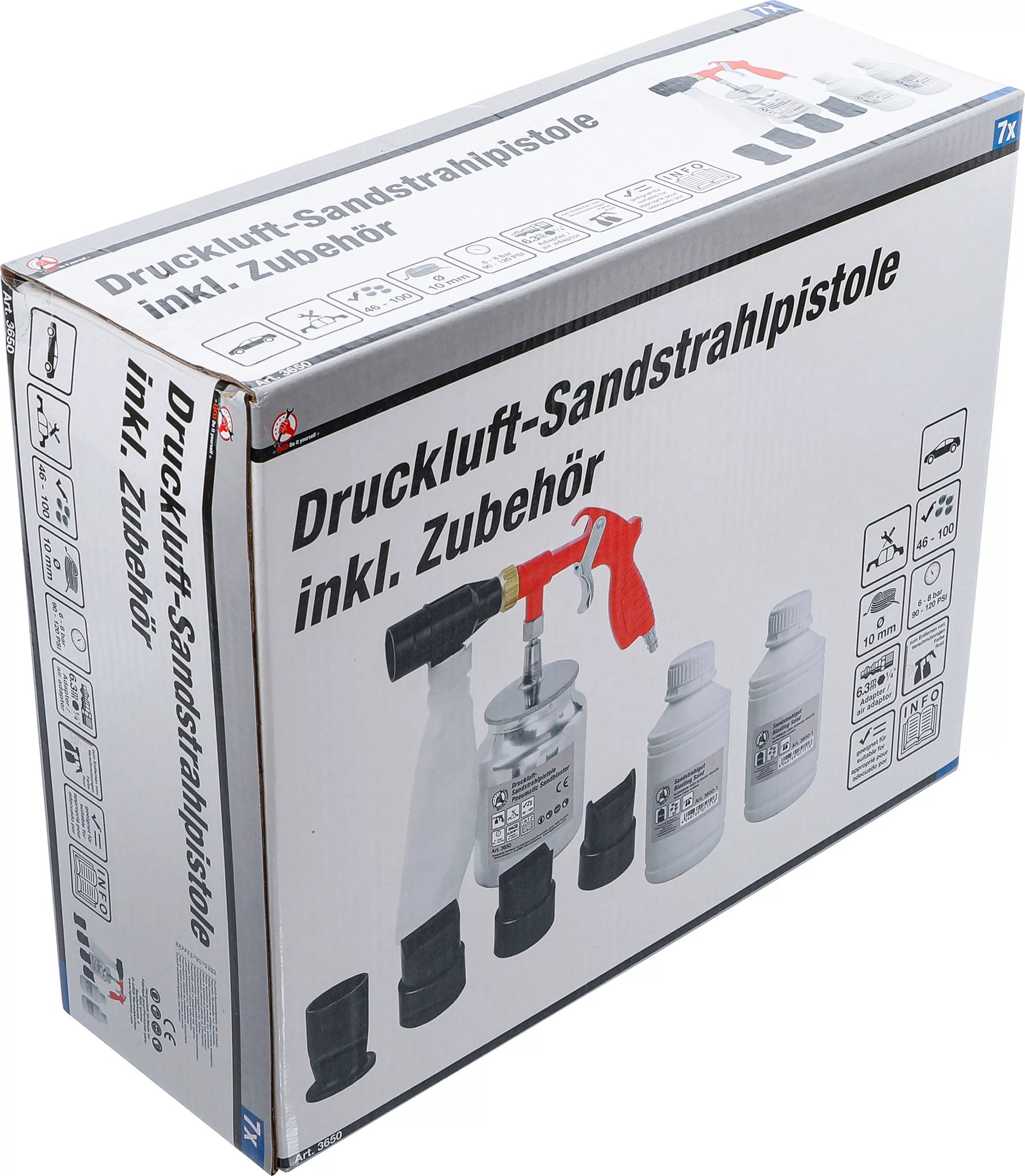 Tryckluft-sandblästringspistol med tillbehör. BGS Diy 3650