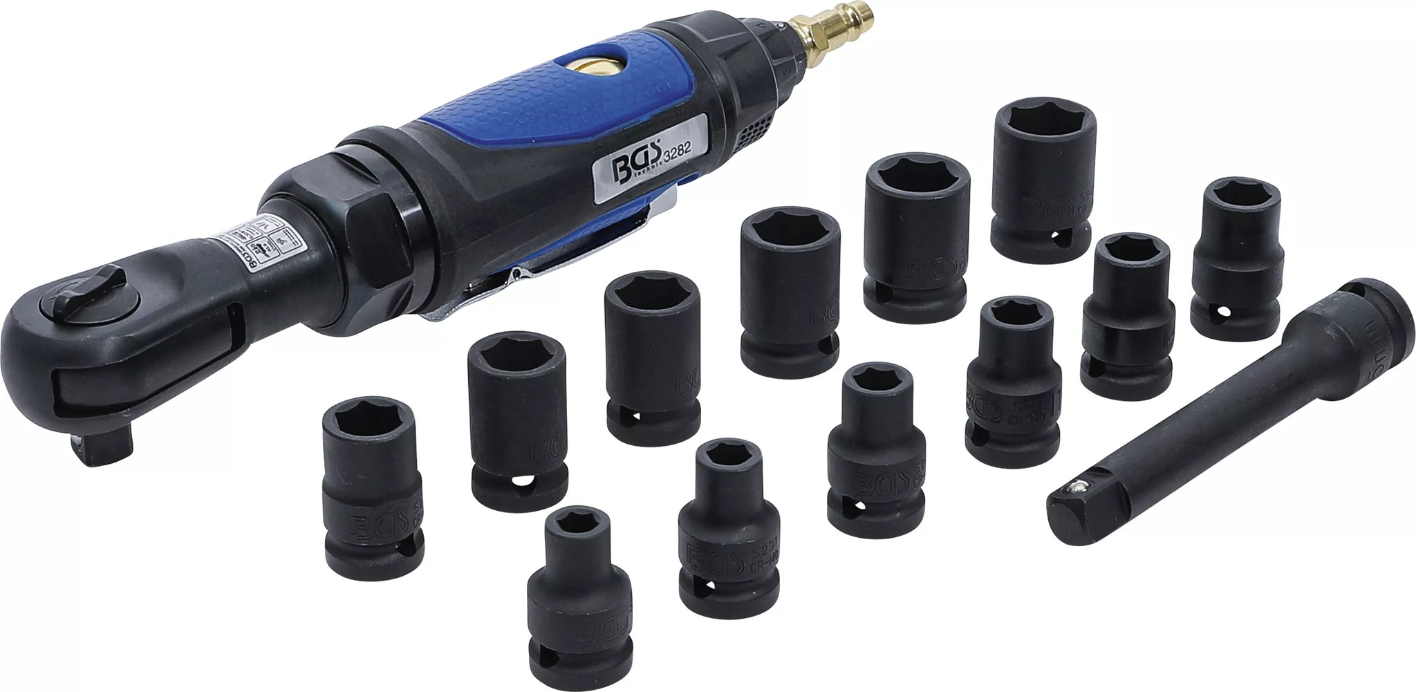 Tryckluft-Spärrskruvdragare-sats | 12,5 mm (1/2") | 102 Nm | 14 delar. BGS 70192
