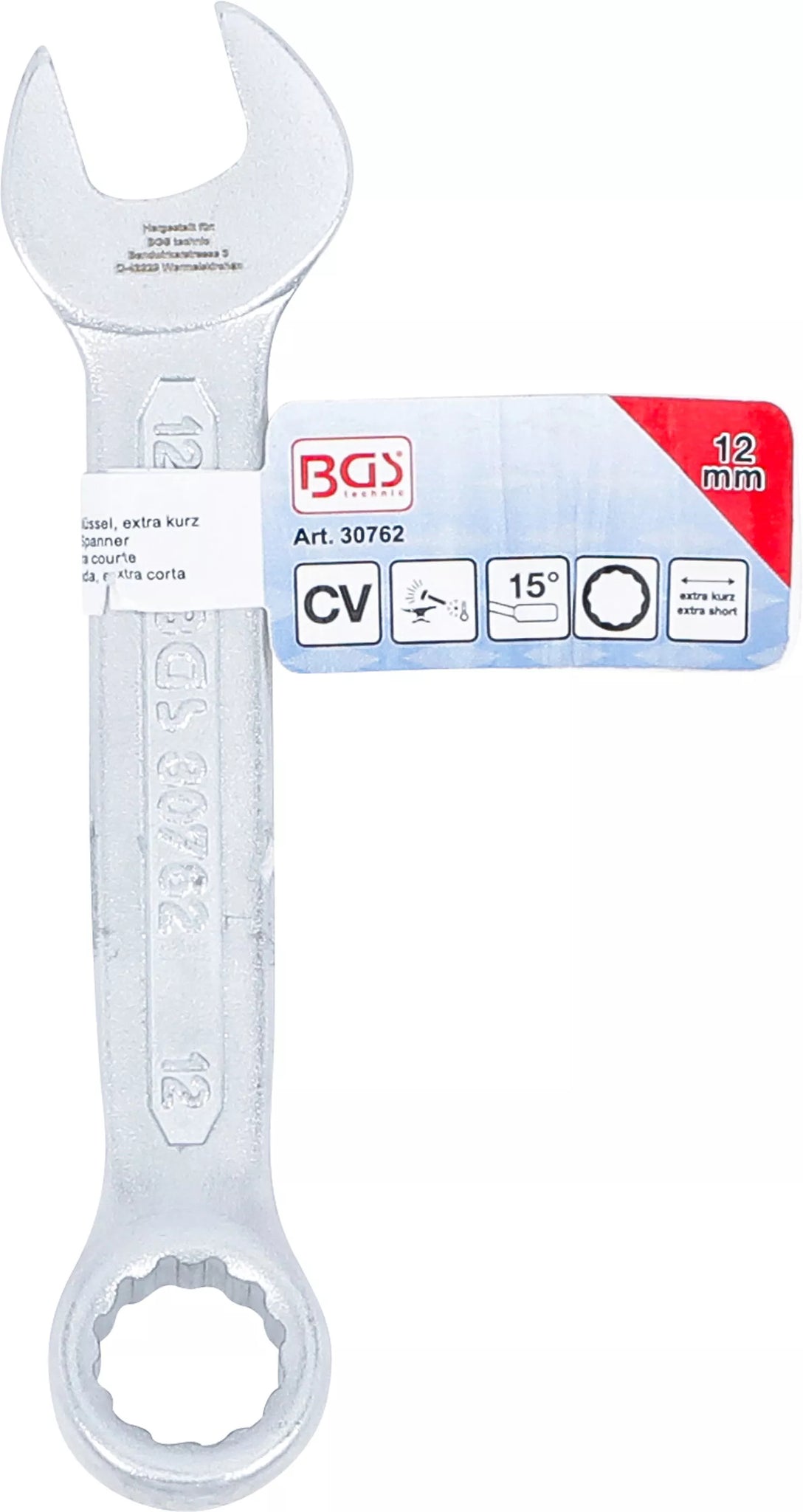 U-ringnyckel, extra kort | 12 mm. BGS 30762