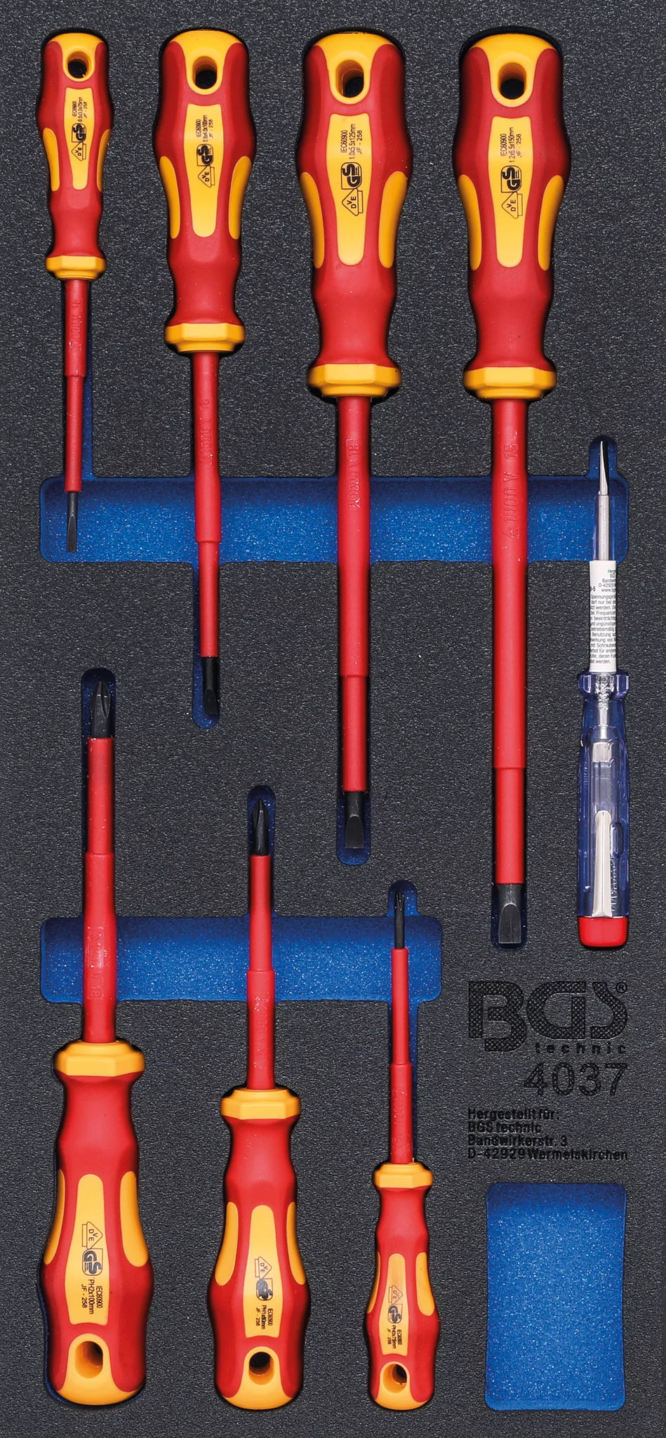 Verkstadsvagninlägg 1/3: VDE-Skruvmejsel-sats | 8 delar. BGS 4037