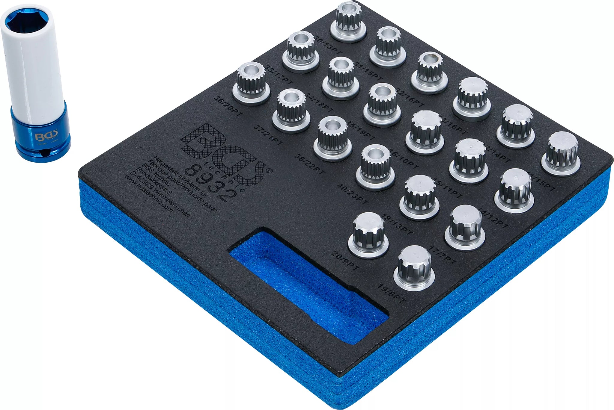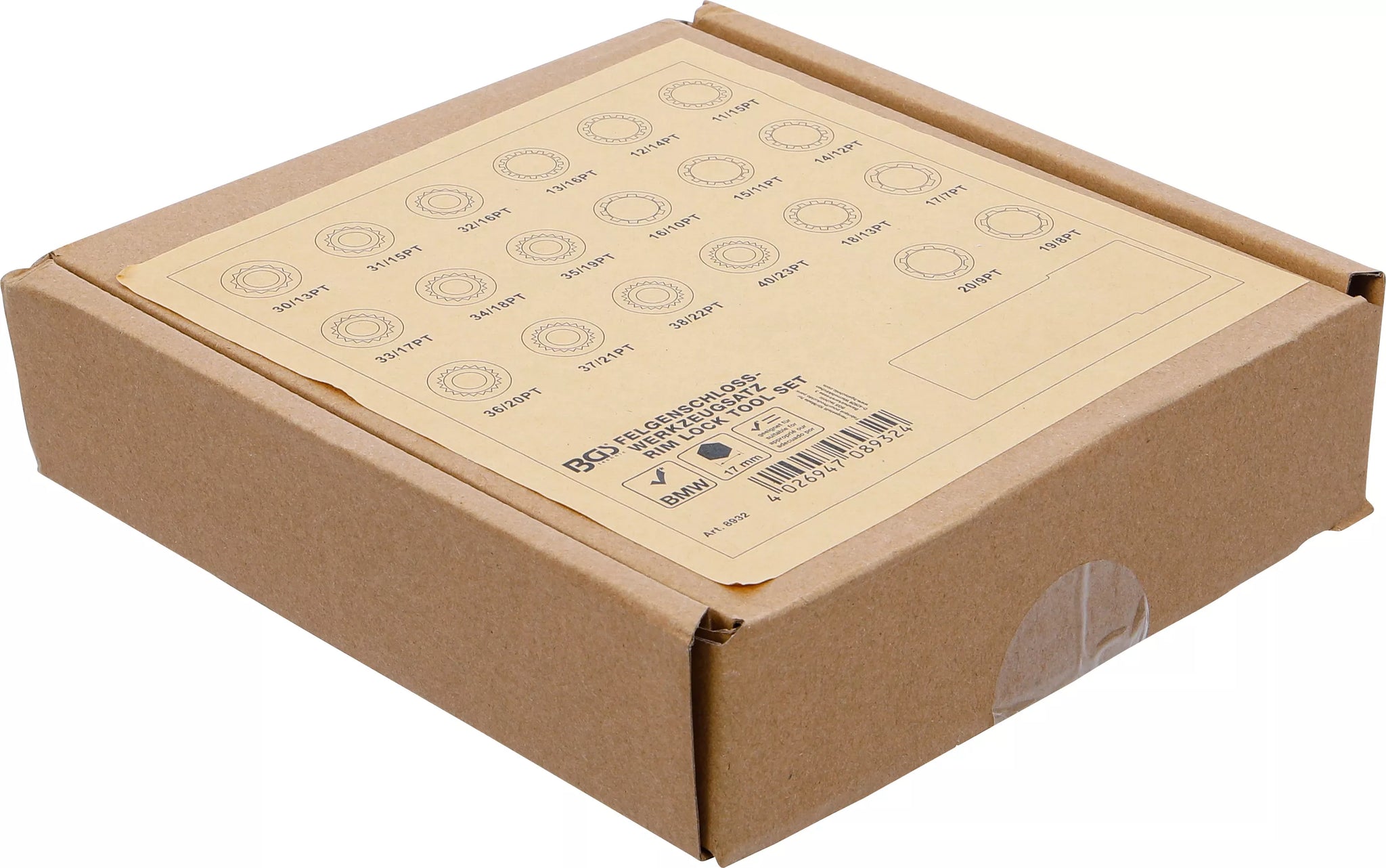 Verkstadsvagninlägg 1/6: Fälglås-Verktyg-sats för BMW | 21 delar. BGS 8932