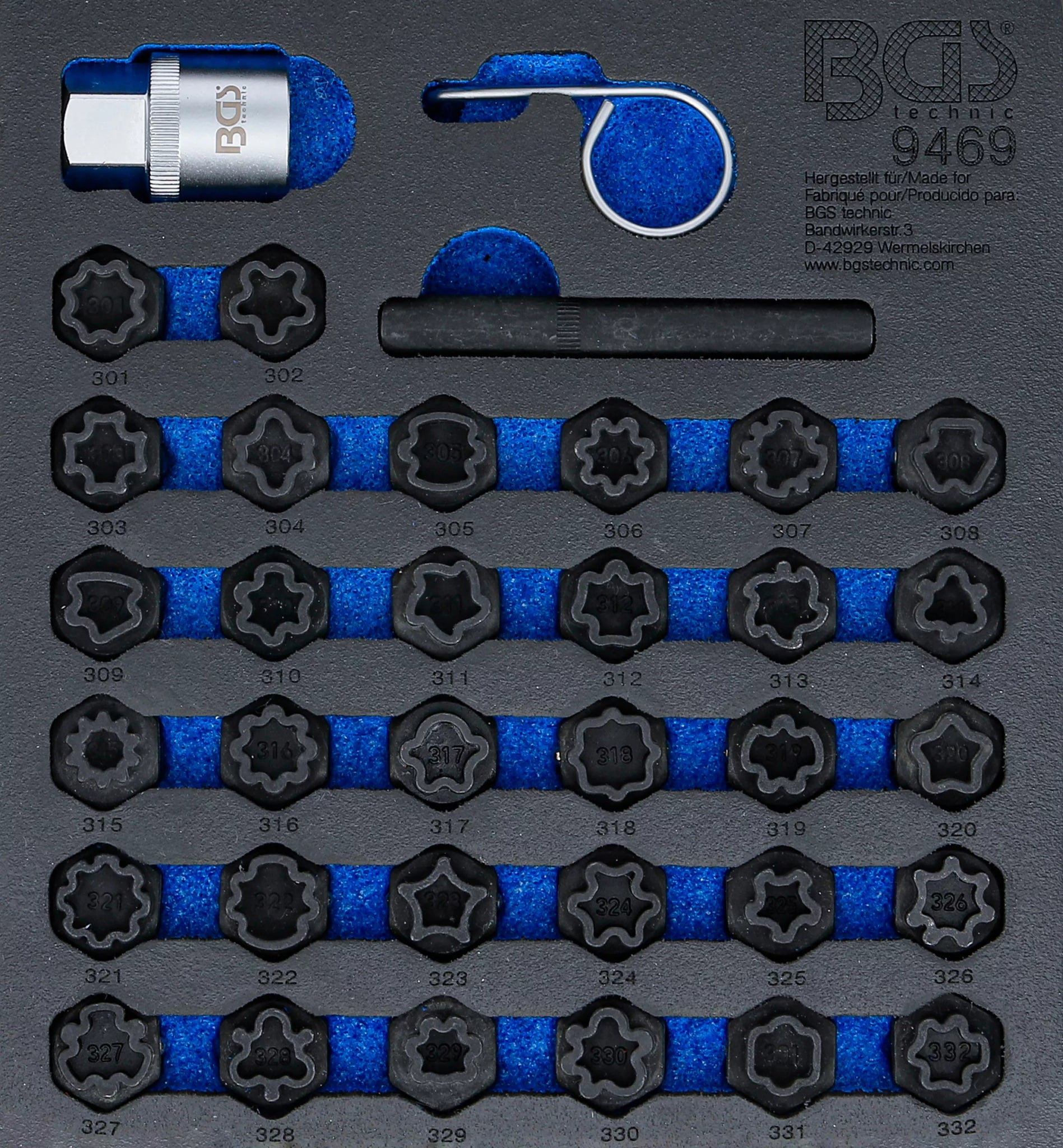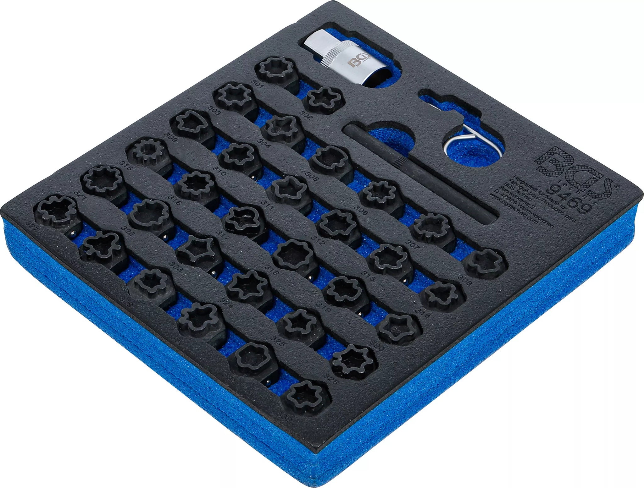 Verkstadsvagninlägg 1/6: Fälglås-Verktyg-sats för Mercedes-Benz | 35 delar. BGS 9469