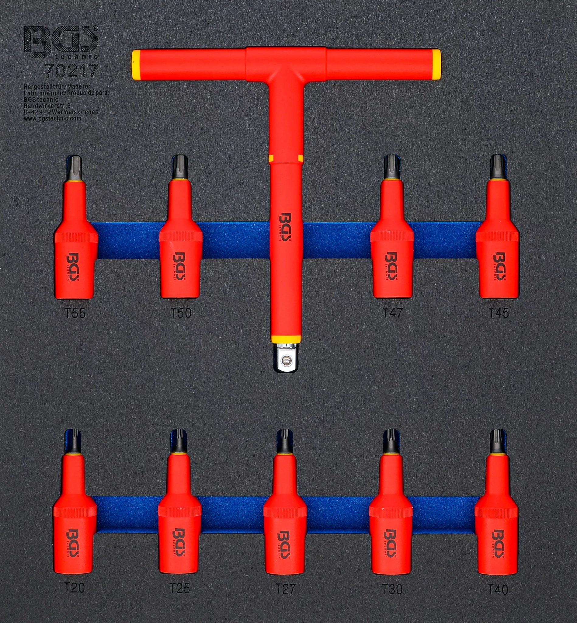 Verkstadsvagninlägg 2/3: VDE-bitshylsa-sats | 12,5 mm (1/2") | T-Profil (för Torx) T20 - T55 | 10 delar. BGS 70217