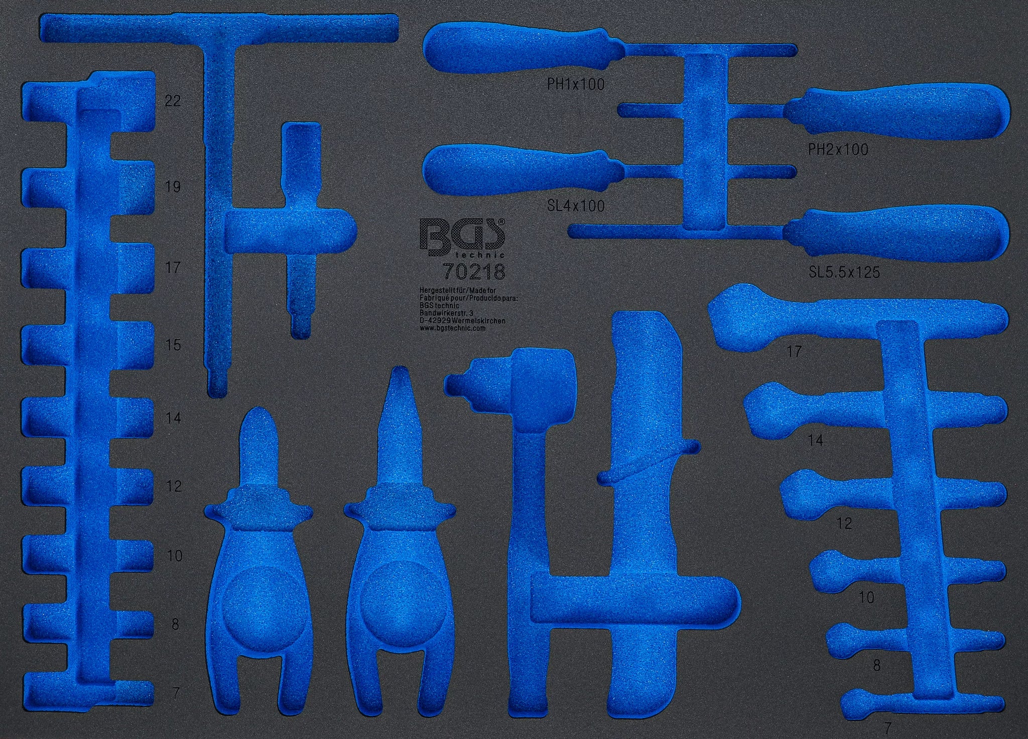 Skumplastinlägg för art. BOXSYS1 & 2: VDE verktygssats | 23 delar. BGS 74356