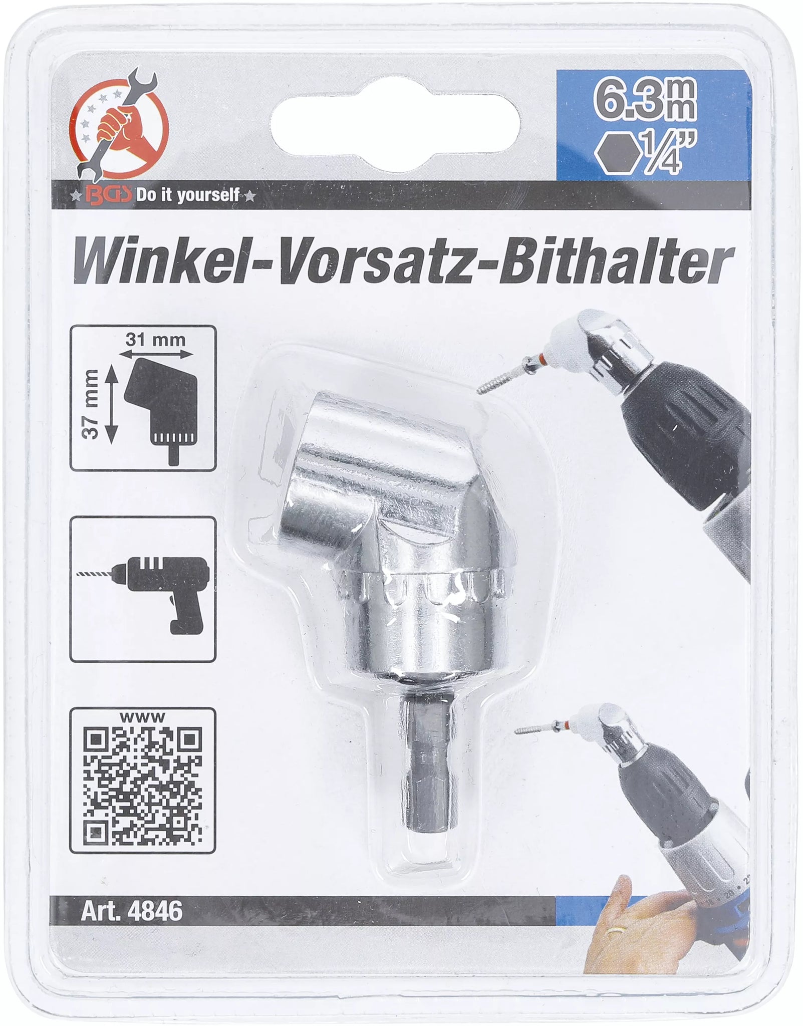 Vinkel-Bithållare | Yttre sexkant 6,3 mm (1/4") | Inre sexkant 6,3 mm (1/4"). BGS Diy 4846