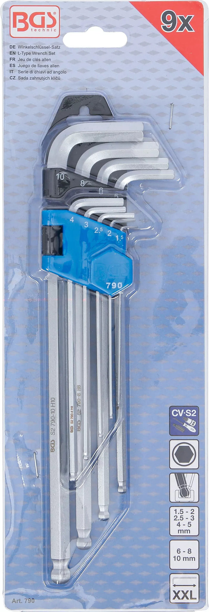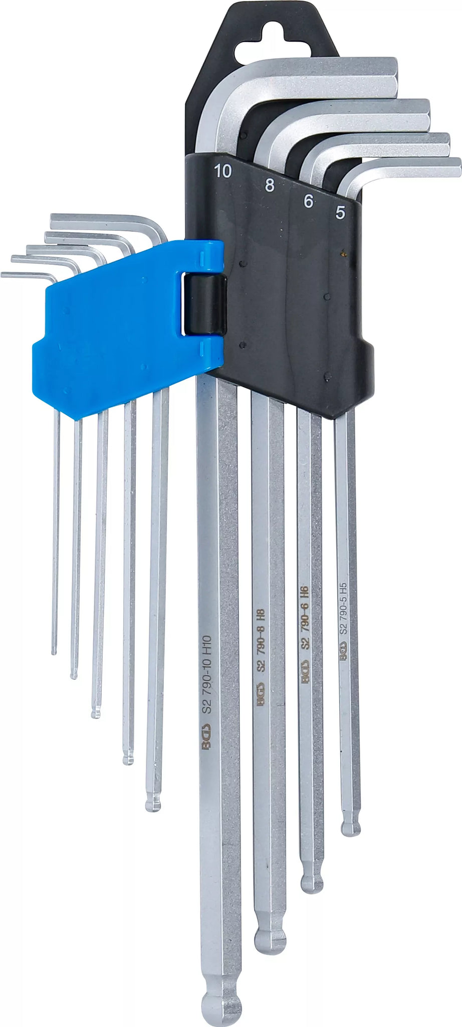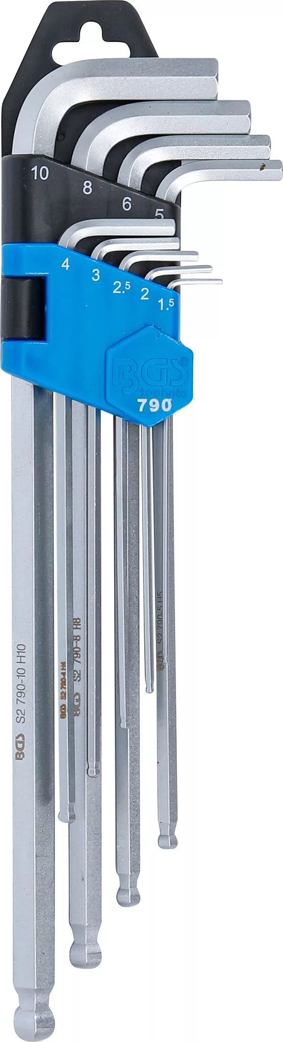 Vinkelnyckel-sats | extra lång | Inre sexkant / Inre sexkant med kulhuvud 1,5 - 10 mm | 9 delar. BGS 790