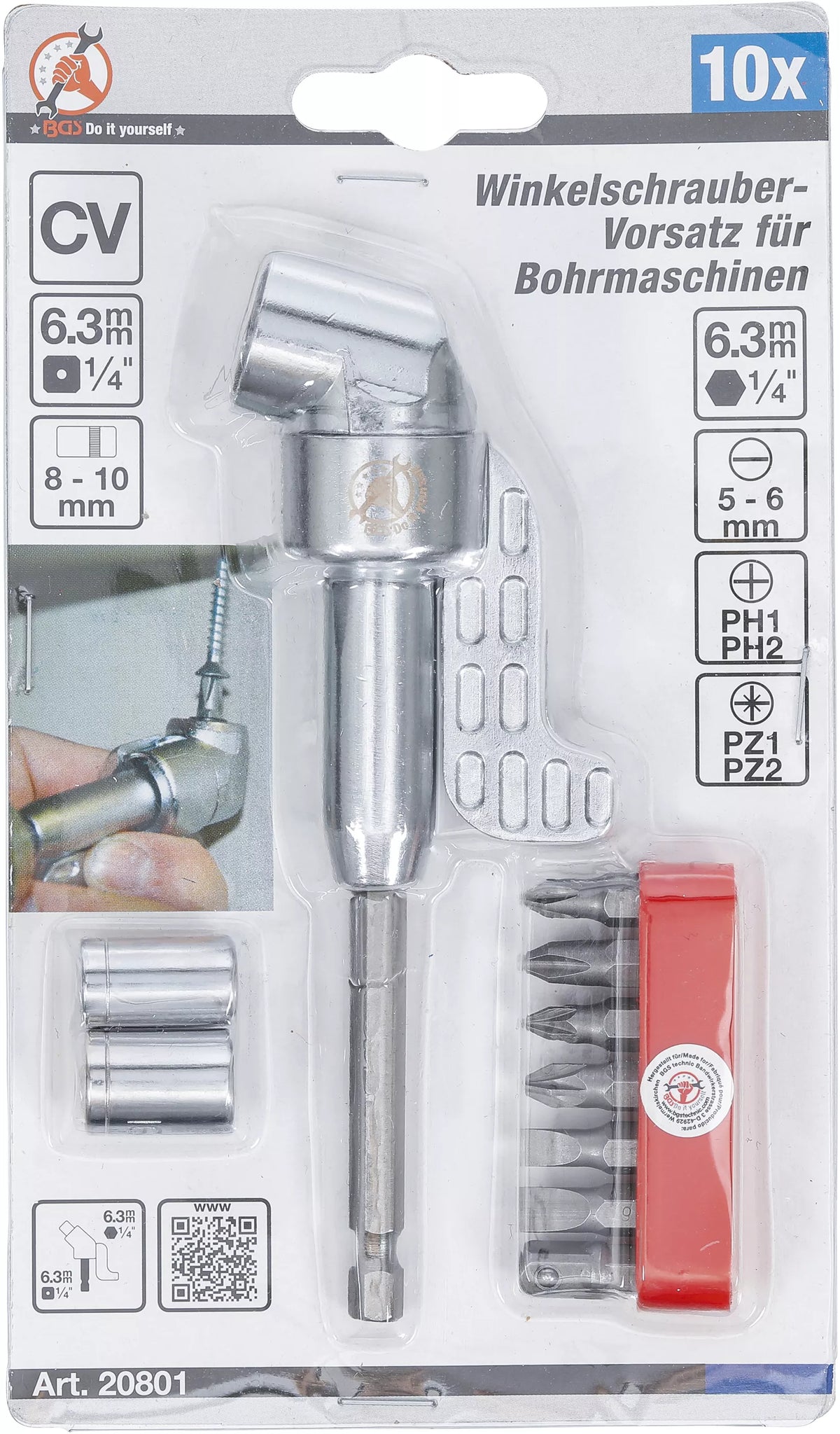Vinkelsskruvdragare-Tillsats för borrmaskiner | 10 delar. BGS Diy 20801
